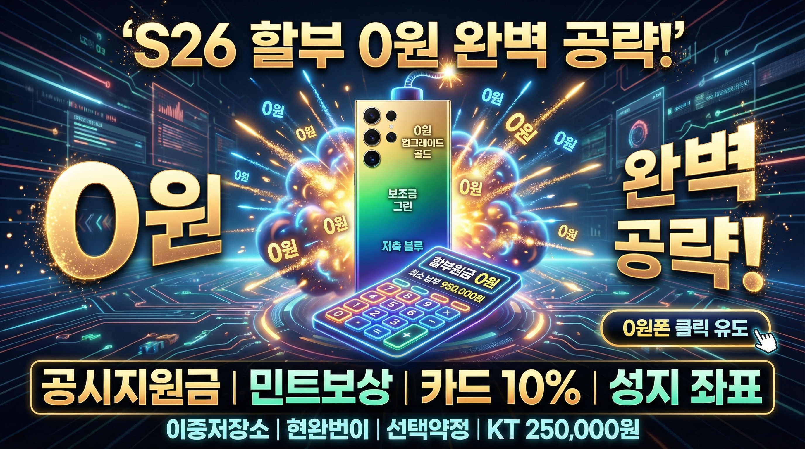 안녕하세요! 드디어 기다리고 기다리던 갤럭시 S26 시리즈가 우리 곁으로 찾아왔습니다. 😊 하지만 매년 오르는 스마트폰 가격을 보면 선뜻 결제 버튼에 손이 가지 않는 게 사실이죠. 특히 이번 울트라 모델 1TB 버전은 250만 원을 훌쩍 넘기며 "이 가격이면 노트북을 사겠다"는 소리가 절로 나오기도 합니다. 하지만 걱정 마세요! 제가 직접 분석하고 계산해 본 결과, 몇 가지 전략만 잘 조합하면 할부 원금을 드라마틱하게 낮추는 것이 불가능한 일은 아니더라고요. 오늘 저와 함께 가계 경제를 지키면서 최신 기술을 손에 넣는 필승 전략을 알아볼까요?
