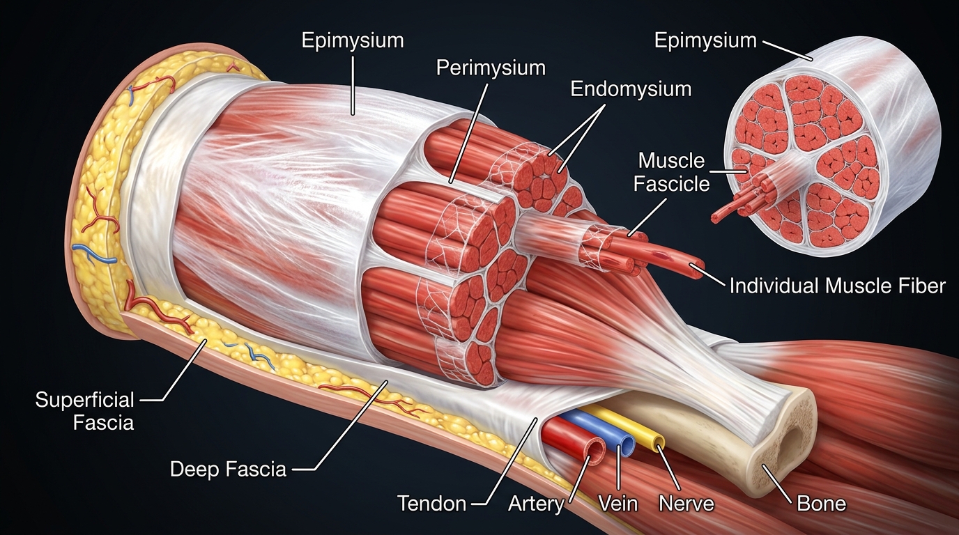 급성구획증후군의 근본 원인(Root Cause)은 우리 몸의 독특한 구조인 '구획'에서 시작됩니다. 우리 팔다리의 근육은 '근막'이라는 질긴 조직에 둘러싸여 있는데, 이 공간을 하나의 방(Compartment)이라고 생각하면 쉽습니다. 이 방은 신축성이 거의 없어요. 그런데 골절로 인해 내부 출혈이 생기거나, 깁스가 너무 꽉 조여 외부 압력이 높아지면 이 좁은 방 안의 압력이 급상승하게 됩니다. 결과적으로 미세혈관이 눌리면서 산소 공급이 중단되고, 근육과 신경이 질식하는 '조직 허혈' 상태에 빠지게 되는 것이죠.