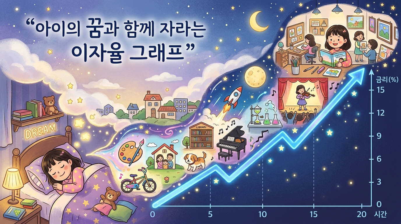 일반 적금의 경우, 시중 은행보다는 제2금융권(저축은행)의 '아이 꿈나무 적금' 같은 상품들이 금리가 1~2% 정도 높습니다. 예금자 보호법에 따라 5천만 원까지는 안전하니 발품을 팔아 높은 금리를 잡으시길 바랍니다.