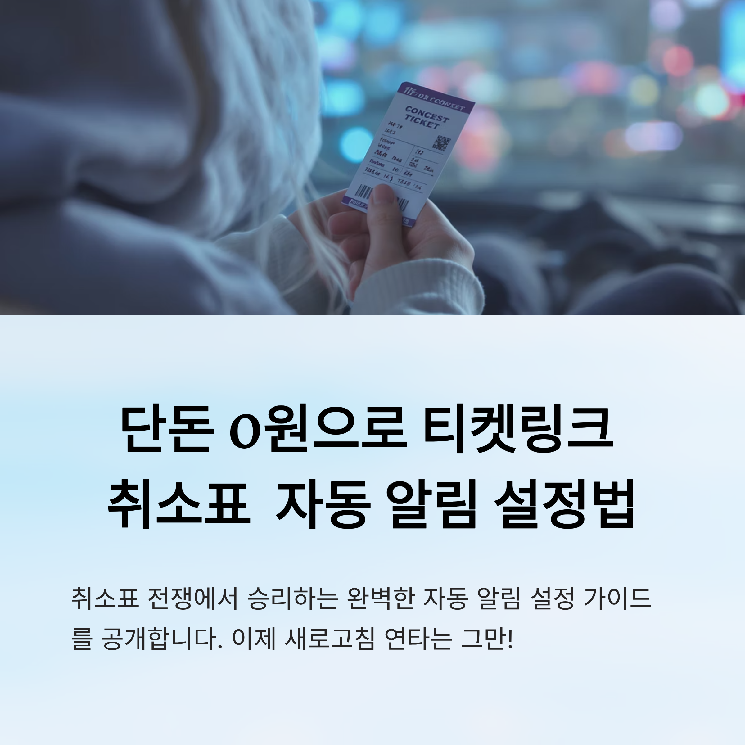 티켓링크에서 공연 티켓이나 인기 콘서트 예매를 시도하다 보면 “취소표라도 잡고 싶다”는 생각이 절로 들 때가 많아요. 새로고침을 아무리 눌러도 안 뜨는 자리가, 다른 사람에겐 운 좋게 열리는 걸 보면 억울하죠. 하지만 이제는 단돈 0원으로 자동 알림을 설정해두고, 찰나의 타이밍을 잡을 수 있는 방법이 있어요. 이 글에서는 자동 알림 설정부터 ‘광클’ 성공 전략까지, 한 번에 정리해드릴게요!