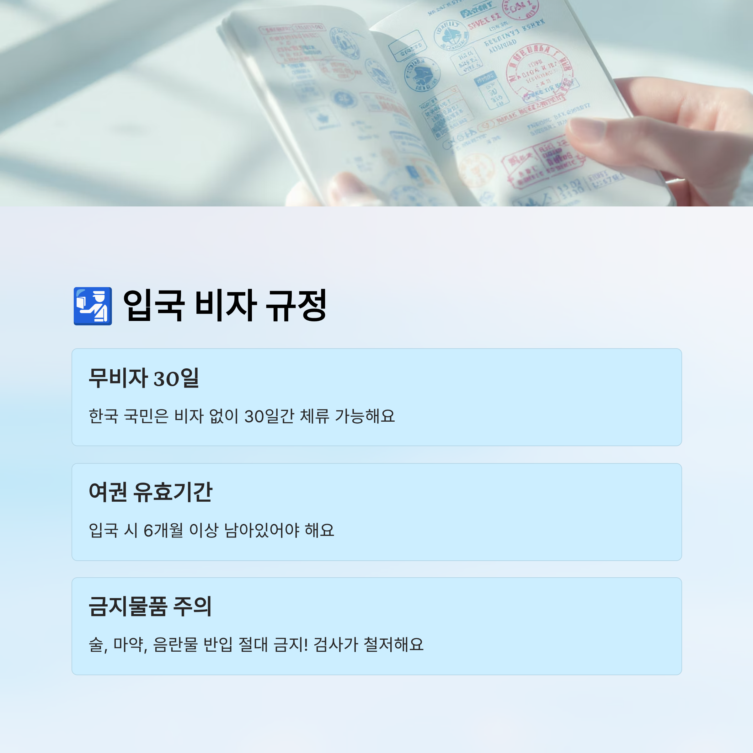 | 입국심사 | 숙소·일정표 준비 추천 |