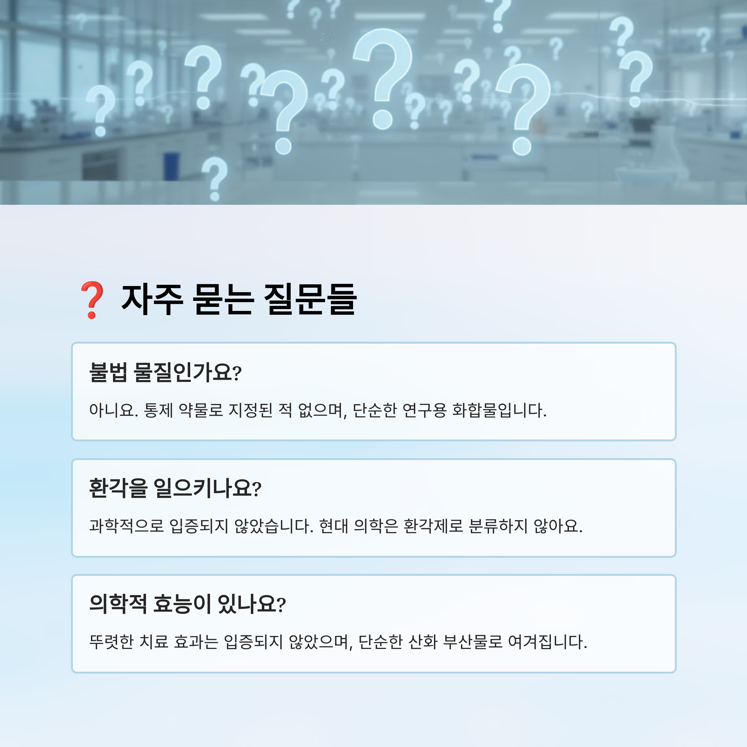 실제로 이런 제조법은 과거 특허로도 공개된 바 있어요. 따라서 특정한 ‘비밀 제조법’이 존재하는 게 아니라, 공개된 화학적 반응 과정을 거쳐 합성할 수 있는 물질이라는 점이 중요해요. 이 때문에 대중문화에서처럼 비밀스럽게 얻어지는 신비한 약물이 아니라는 사실을 분명히 알 수 있답니다.
