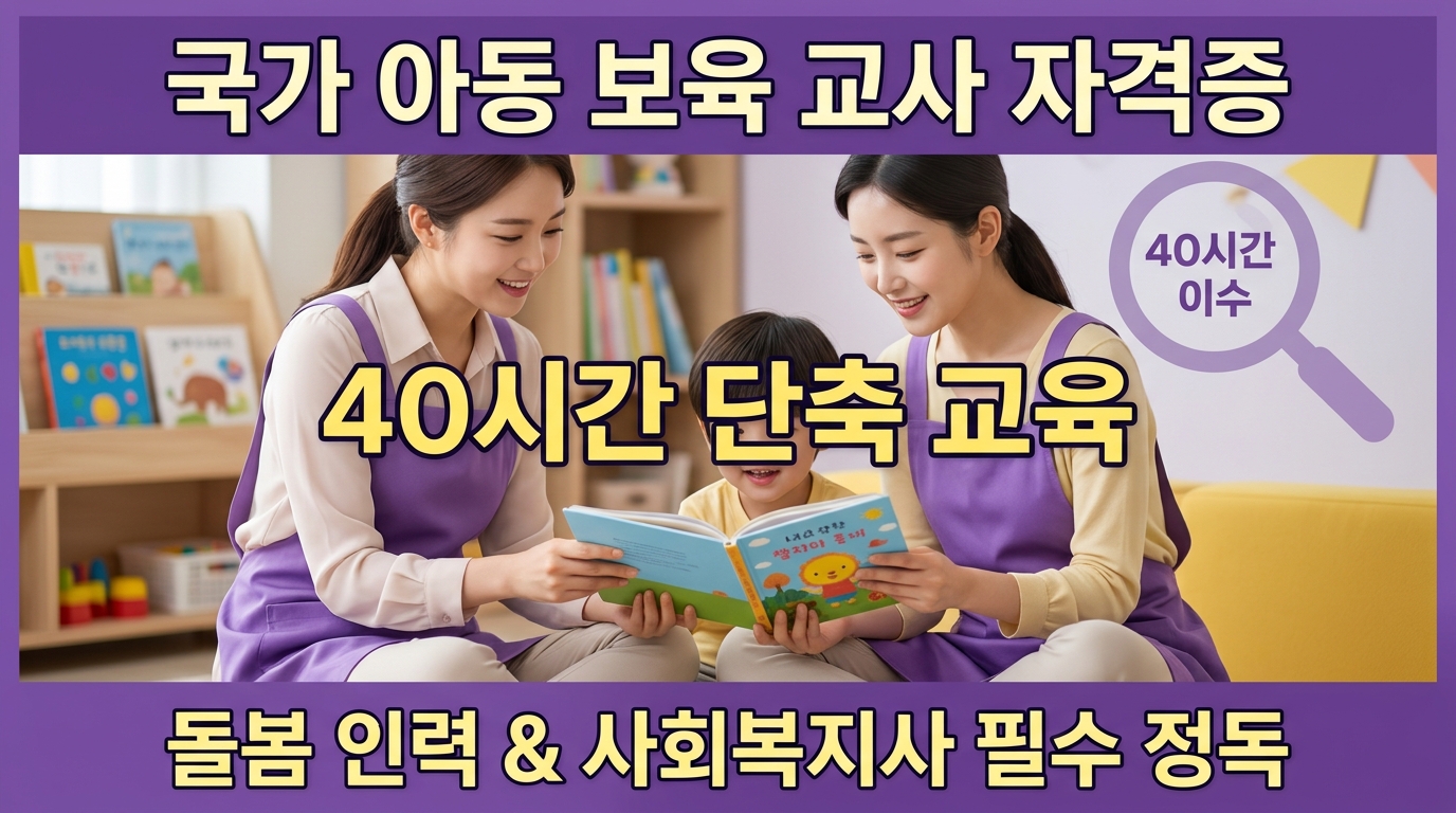 안녕하세요! 요즘 경력 단절 해소나 은퇴 후 재취업을 고민하시는 분들 사이에서 가장 뜨거운 키워드가 바로 '아이돌봄사 국가자격증'이죠? 기존에는 민간 자격이나 단순 양성 교육 위주였다면, 이제는 국가가 공인하는 자격 체계로 완전히 탈바꿈하게 되었답니다. 특히 요양보호사나 사회복지사 자격증을 이미 가지고 계신 분들이라면 단 40시간의 교육만으로 자격 취득이 가능하다는 사실, 알고 계셨나요? 오늘은 제가 현장의 생생한 정보와 팩트를 기반으로, 여러분이 궁금해하실 단축 교육의 모든 것을 아주 쉽게 풀어드리겠습니다. 끝까지 읽어보시면 분명 큰 도움이 되실 거예요! 😊