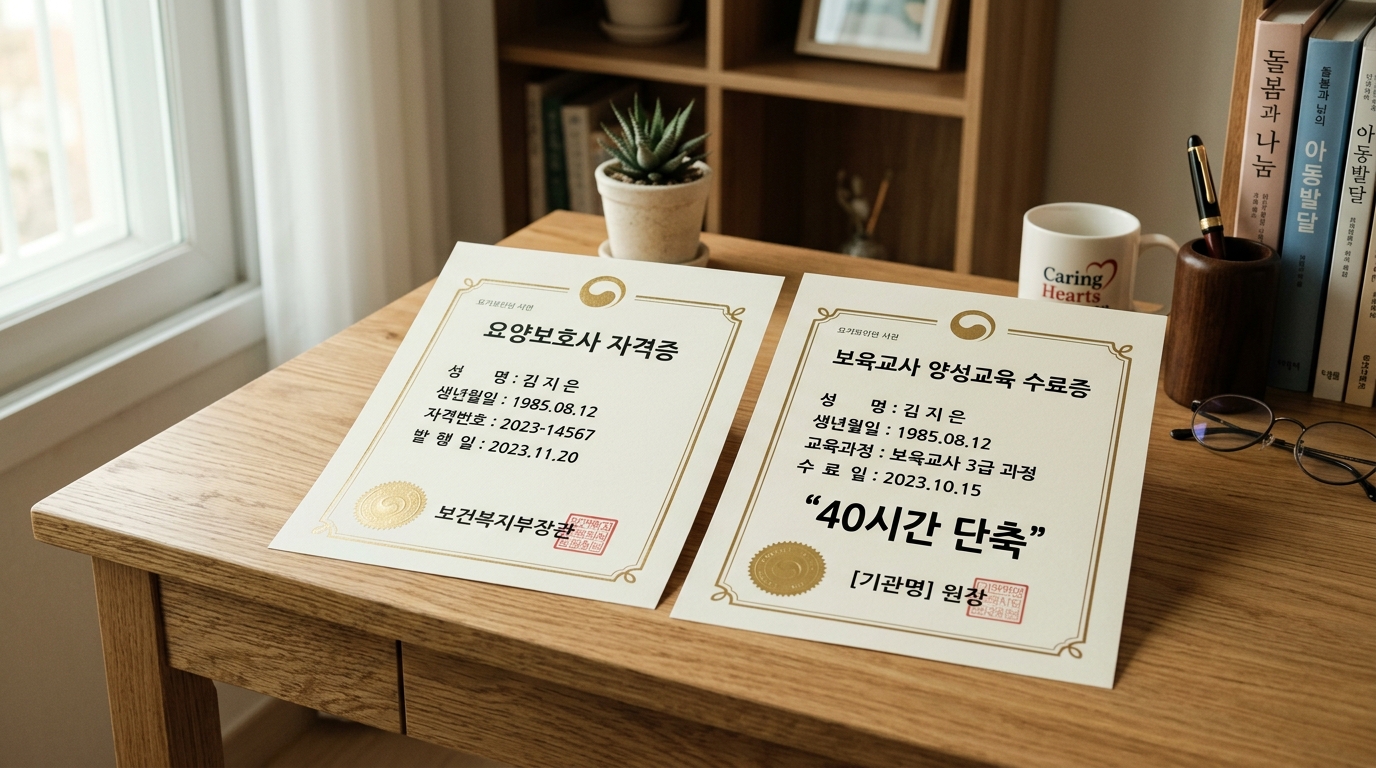 실제로 제가 상담해 드린 요양보호사 한 분은 "어르신 돌봄도 보람차지만, 아이들을 좋아해서 전직을 고민했는데 교육 시간이 짧아져서 당장 신청했다"고 하시더라고요. 다만, 주의할 점은 자격증만 있다고 자동 발급되는 것이 아니라 반드시 40시간의 교육과정을 수료해야 한다는 점입니다.