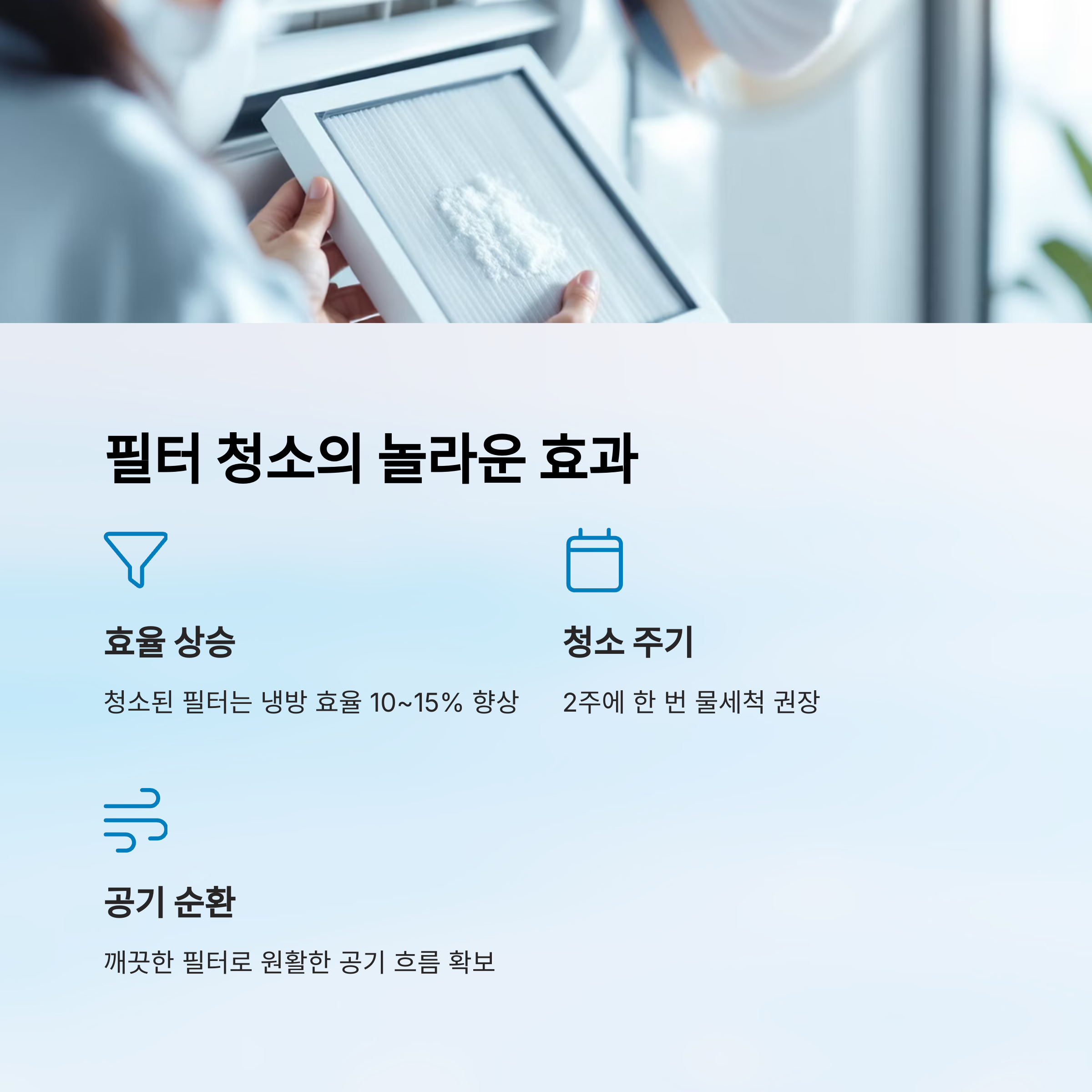 표를 보면 간단한 청소 하나로도 전력 효율이 크게 달라지는 걸 알 수 있어요. 내가 생각했을 때, 에어컨 관리의 핵심은 필터라고 해도 과언이 아니에요. 😉