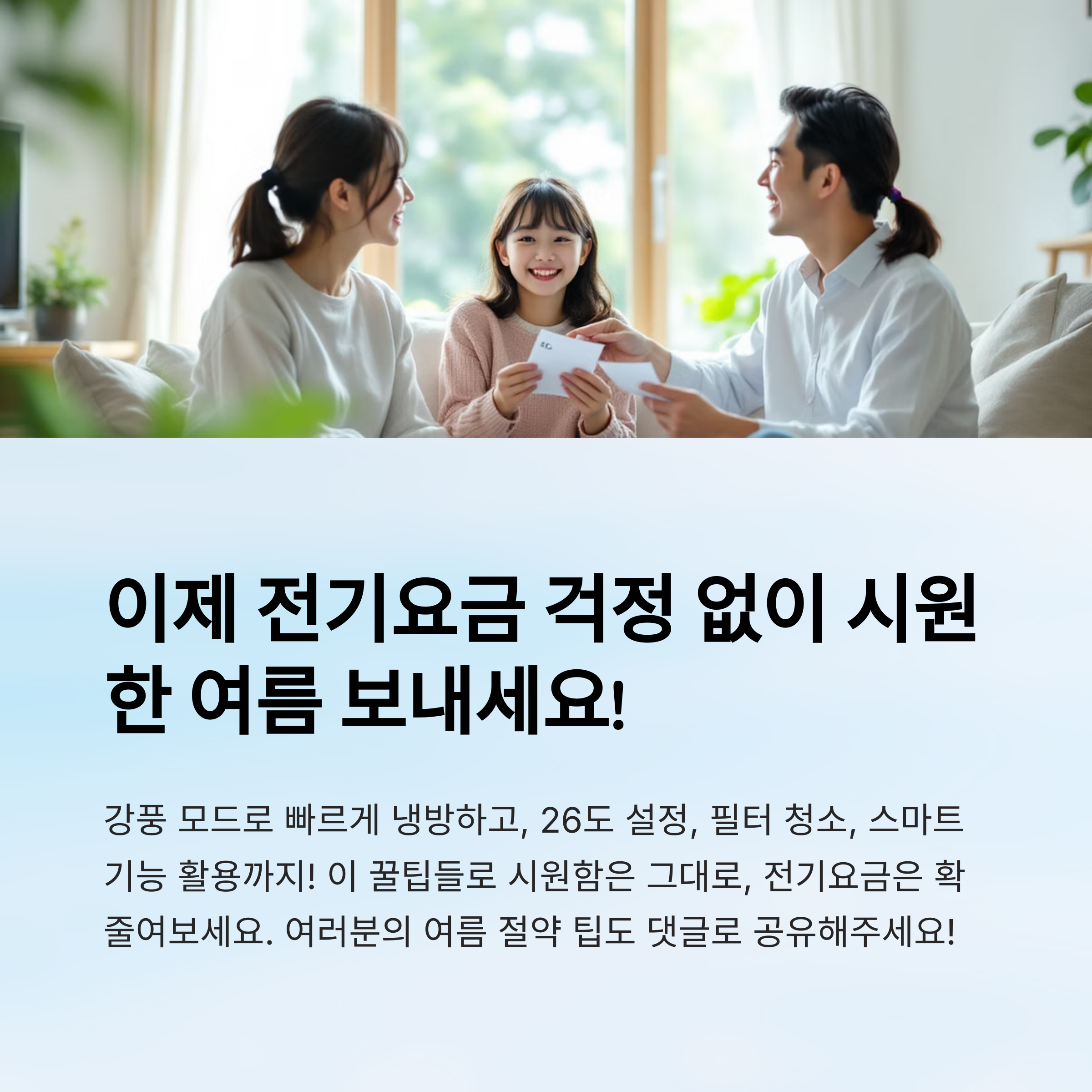 이 기능들만 잘 활용해도 한 달 전기요금이 수만 원은 줄어들 수 있어요. 최신 에어컨의 기술력을 믿고 똑똑하게 사용하는 습관이 필요해요. 😄