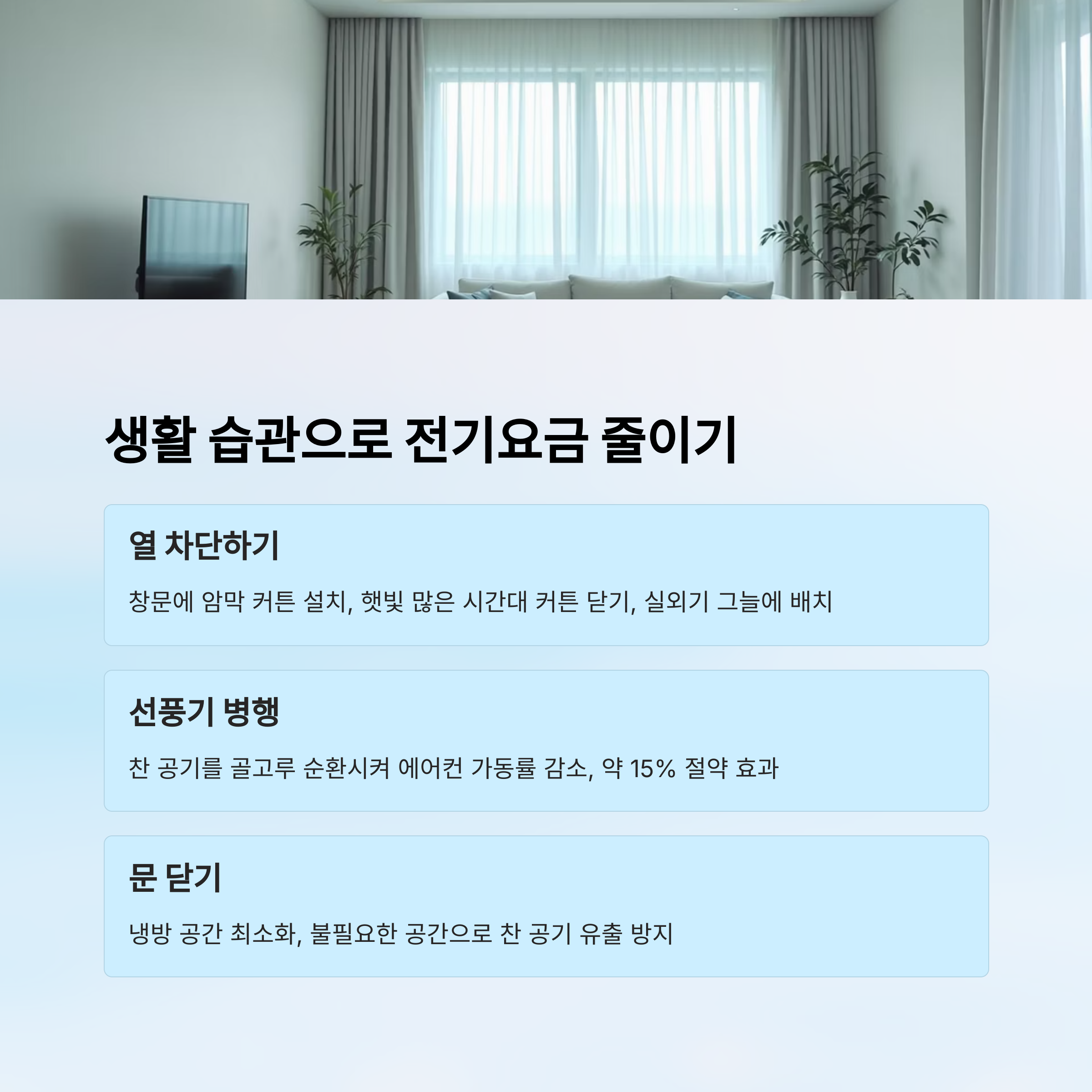 이 작은 실천들이 모이면 여름 전기요금이 확 줄어들어요. 전기료 걱정 없이 시원한 여름, 생활 속 습관에서 시작해보세요! 🌬️