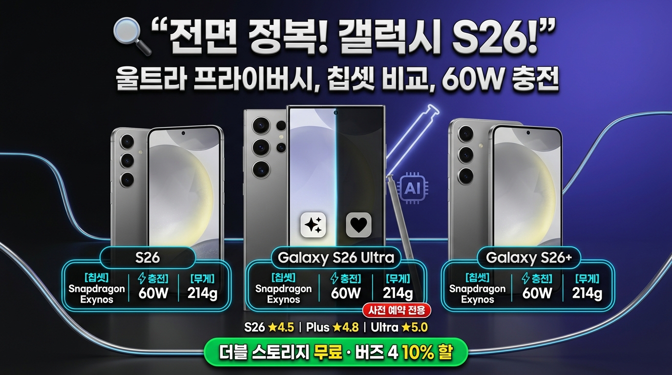 [갤럭시 S26 시리즈 완전 정복] 2026년 상반기를 뜨겁게 달구고 있는 삼성의 야심작, 갤럭시 S26 시리즈의 모델별 차이점부터 사전 예약 혜택까지 5,000자 분량의 심층 가이드로 완벽하게 정리해 드립니다.