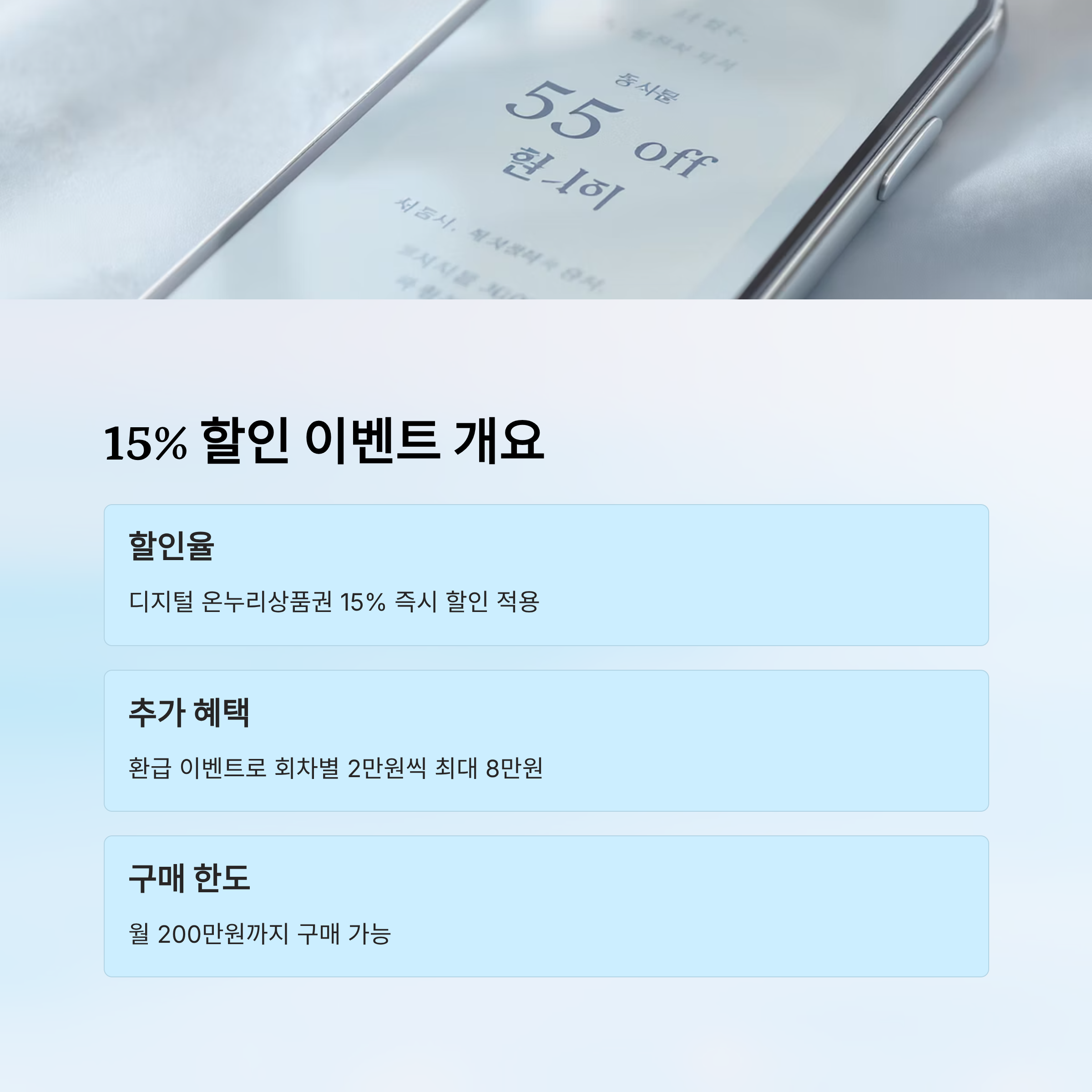 디지털 온누리상품권은 카드형과 모바일형 두 가지 형태로 제공되며, 구매 시 15% 할인이 즉시 적용됐어요. 예를 들어 100만 원 상당의 상품권을 85만 원에 구매할 수 있는 구조예요. 무려 15만 원이나 절약이 되는 거죠!