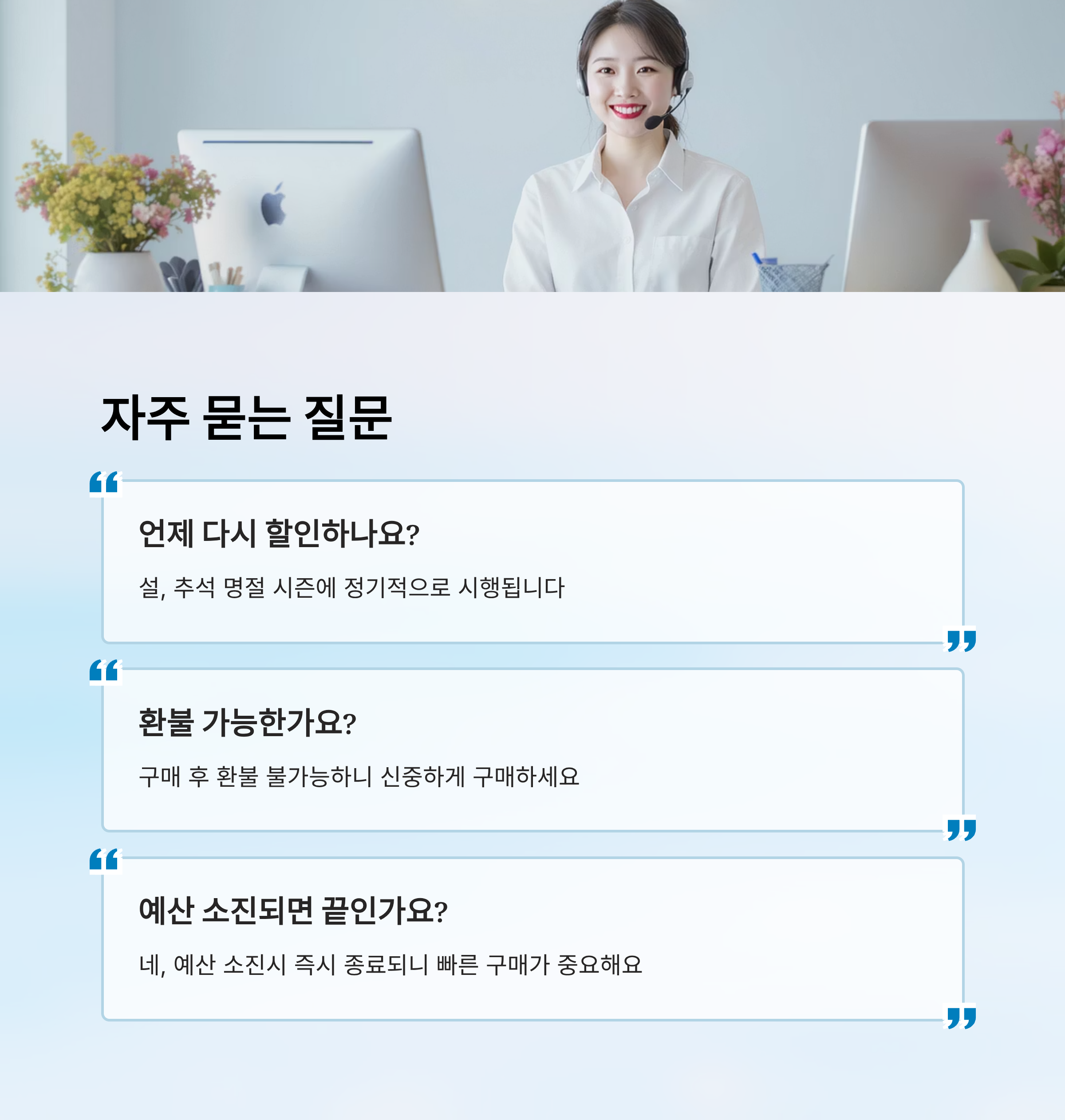 A7. 맞아요. 예산이 다 소진되면 즉시 종료돼요. 그래서 '빠른 구매'가 가장 중요해요!