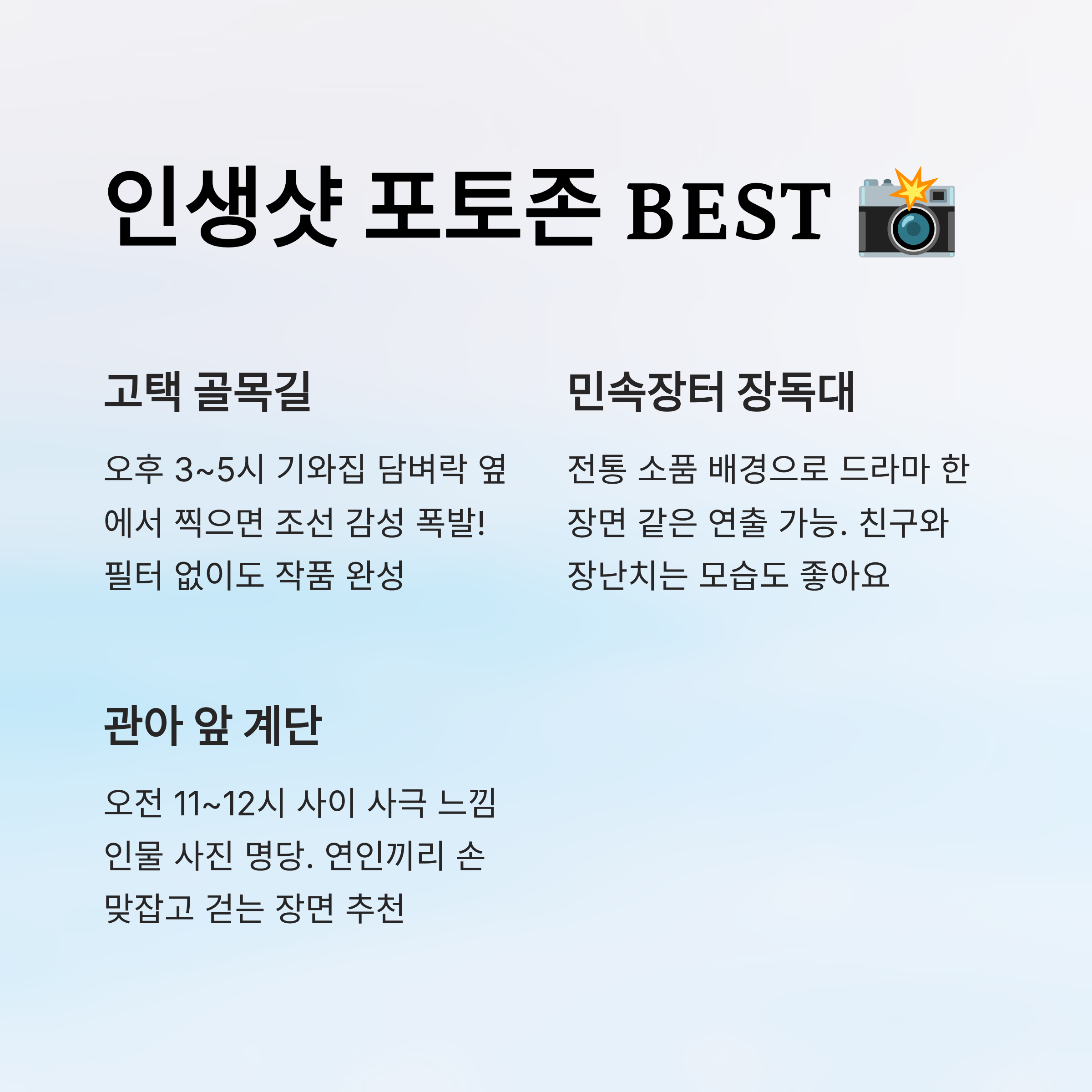 📸 포토존 베스트 위치 요약