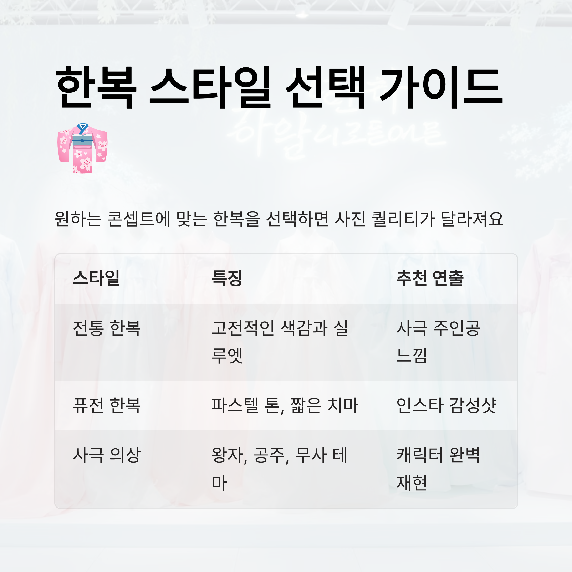 스타일 선택에 따라 분위기가 확 달라지니, 원하는 콘셉트에 맞게 골라 입는 재미가 쏠쏠해요! 요즘은 특히 퓨전 한복이 인스타 감성샷용으로 인기가 많답니다 💕