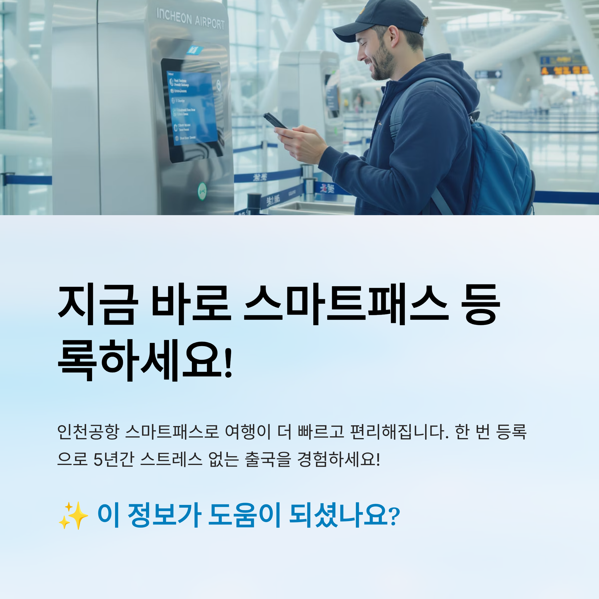 스마트패스 등록 정보는 5년간 유효하므로 여행이 잦은 분들에게는 특히 유용해요. 매번 공항 갈 때마다 다시 등록하지 않아도 되니까 한 번 해두면 앞으로 장기적으로 편리함을 누릴 수 있어요.