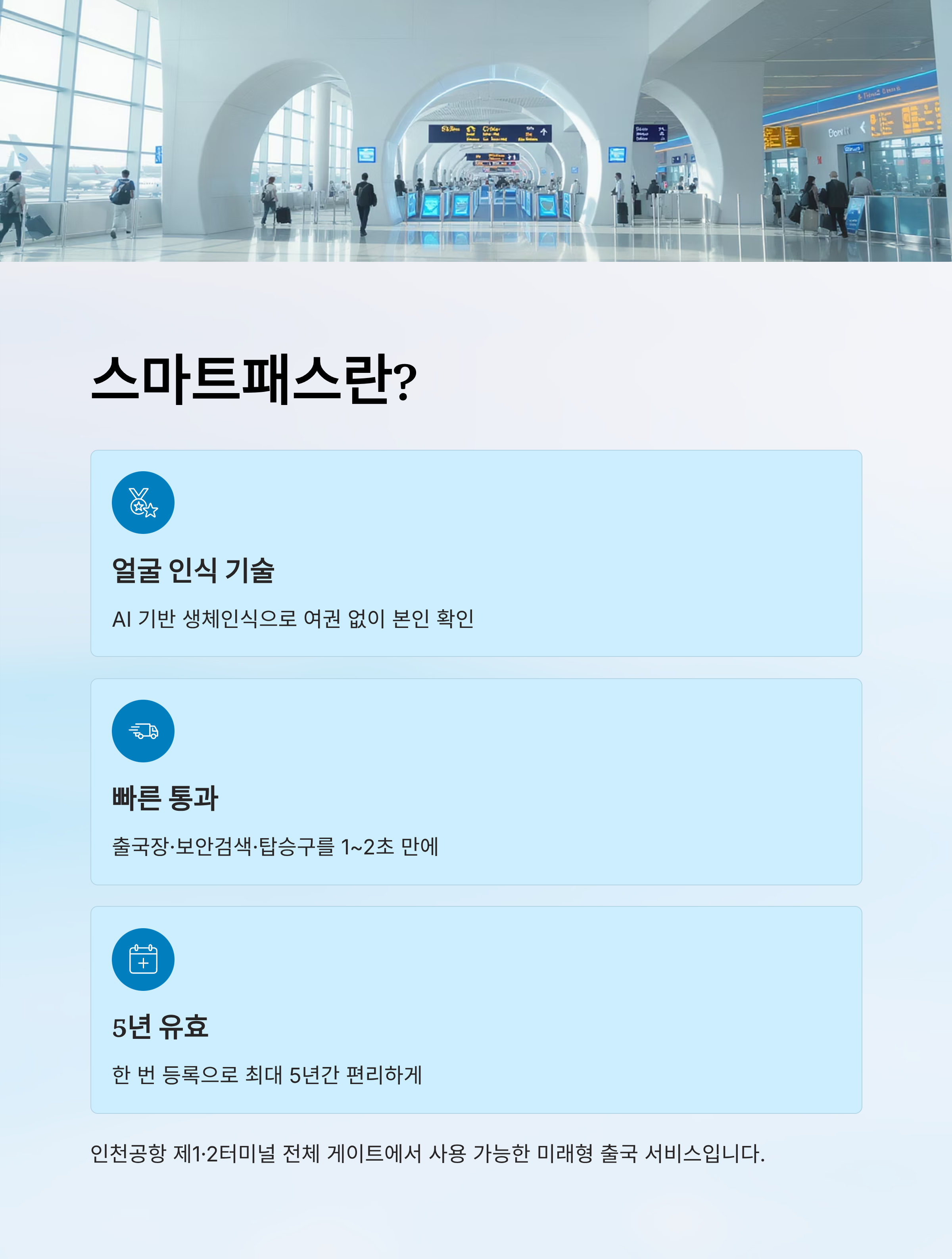이제 본격적으로 스마트패스가 무엇인지, 어떻게 등록하는지, 누가 이용할 수 있는지, 또 실제 공항에서는 어떻게 활용되는지를 단계별로 정리해드릴게요. ‘출국 5분 컷’이라는 말이 괜히 나온 게 아니에요! ✈️