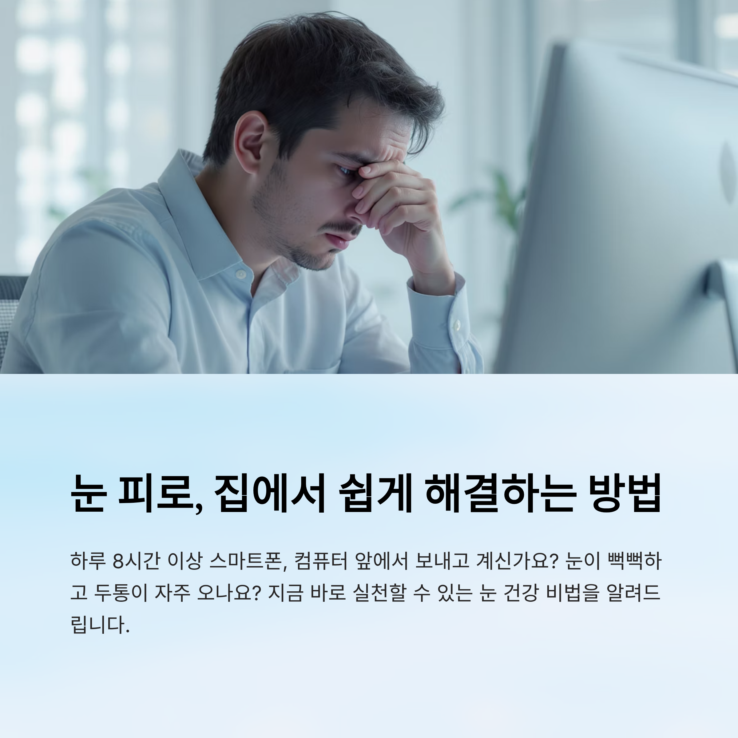 하루 종일 스마트폰, 컴퓨터, 태블릿 앞에 앉아 있으면 눈이 뻑뻑하고 두통이 올 때가 많죠? 특히 재택근무와 온라인 수업이 늘어난 요즘, 눈 피로는 단순한 불편을 넘어 만성 문제로 이어질 수 있어요.😣