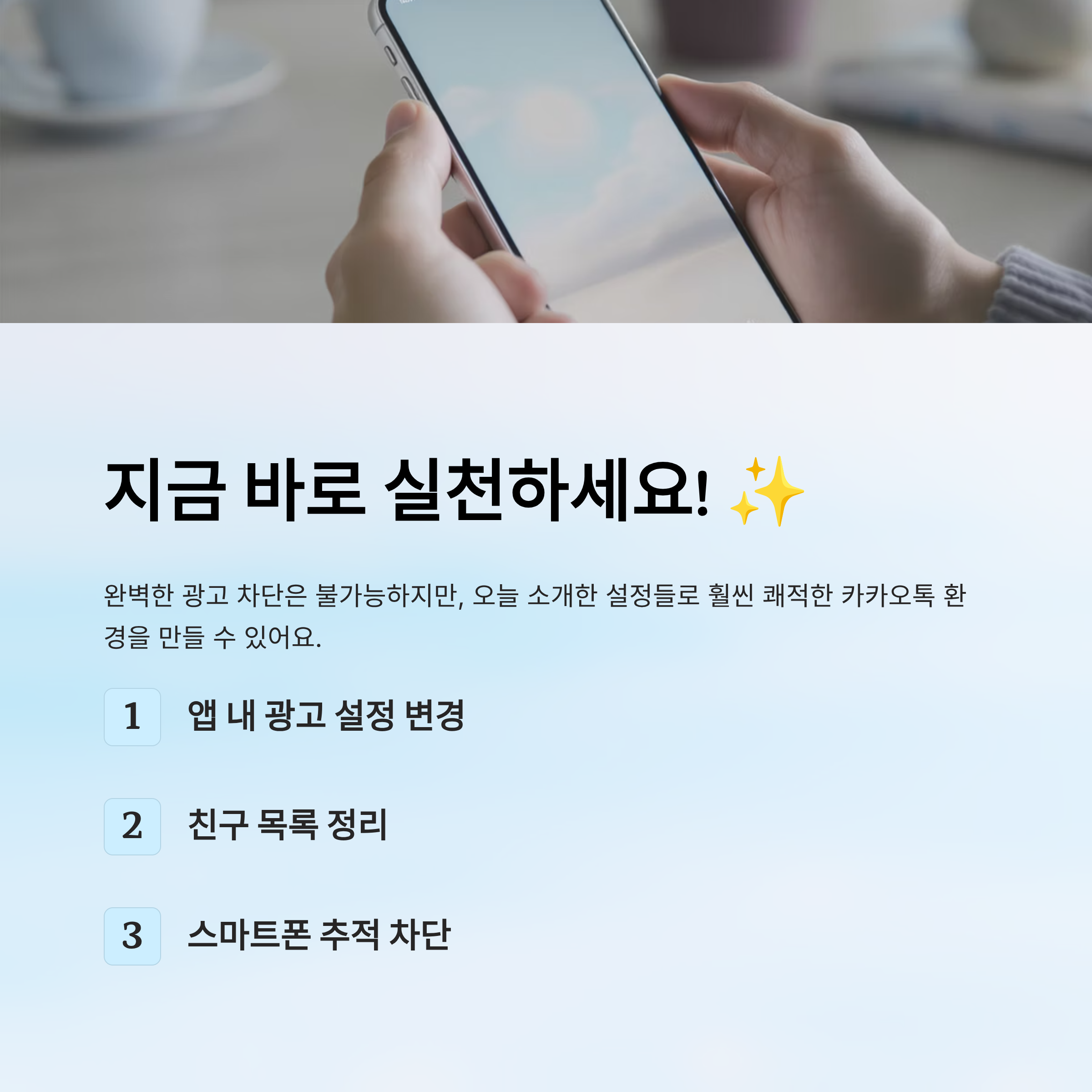 모든 광고를 없앨 수는 없지만, 설정 몇 가지로 삶의 질을 높일 수 있어요. 지금 바로 내 카톡을 점검해보는 건 어떨까요? 😉