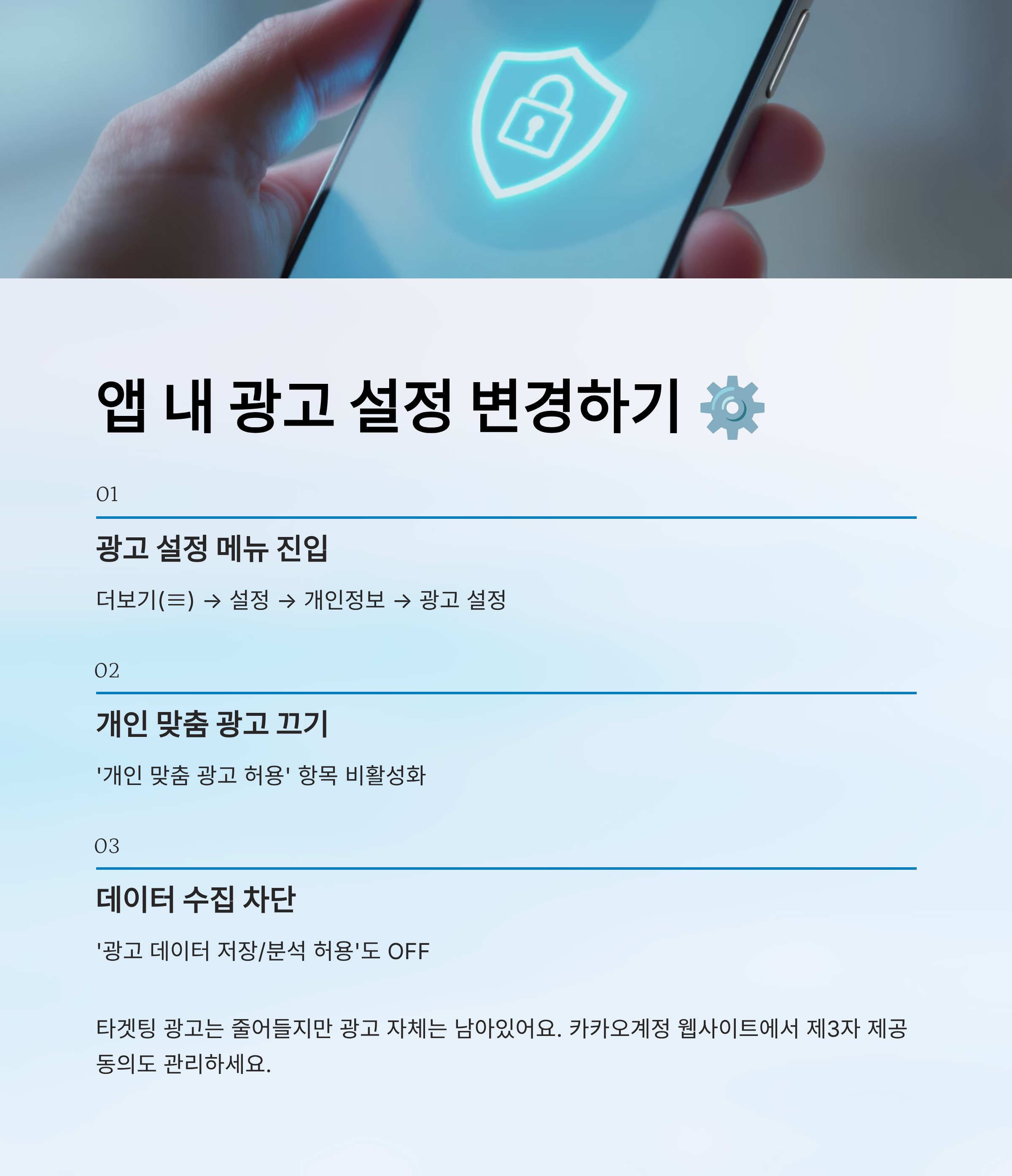 | 개인 맞춤 광고 허용 | 카카오톡 > 설정 > 광고 | OFF |