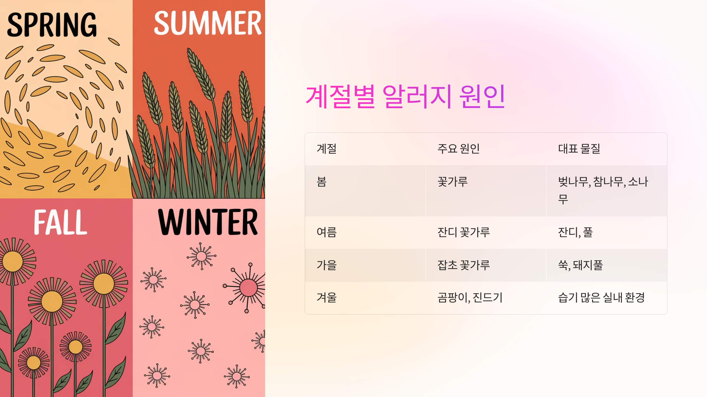 | 계절 | 주요 원인 | 대표 물질 |