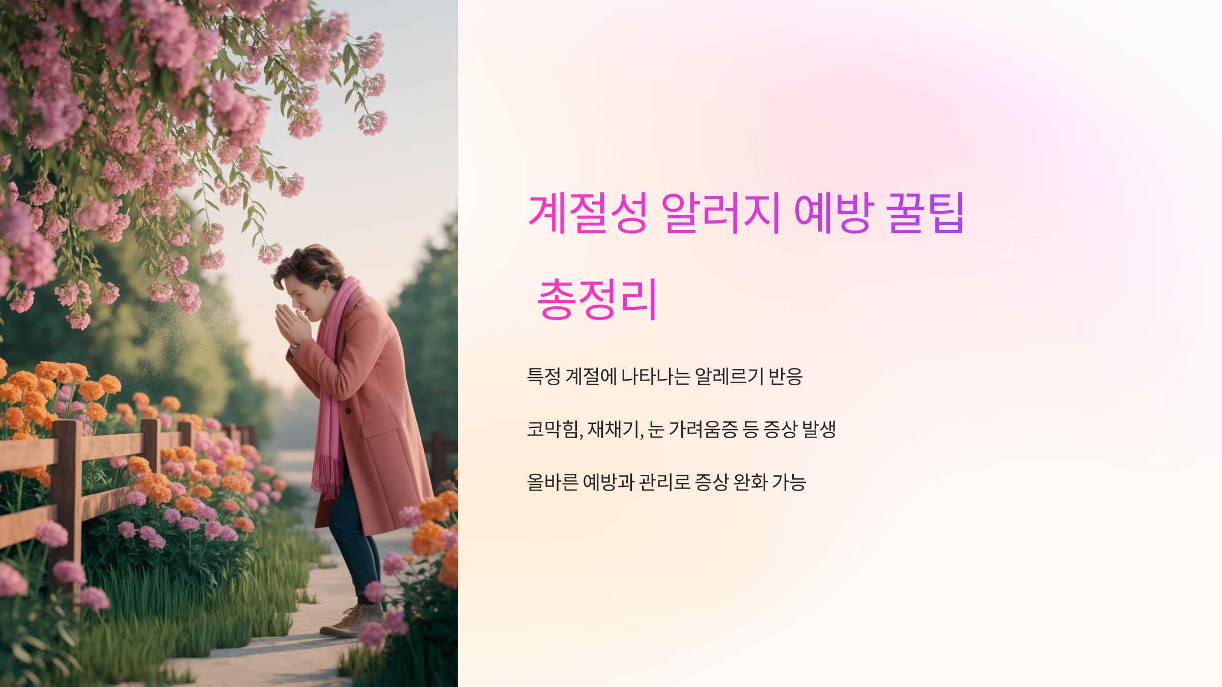 계절성 알러지는 관리와 예방을 통해 충분히 증상을 줄일 수 있어요. 외출 시 마스크 착용, 실내 공기 관리, 올바른 약물 사용을 통해 건강하게 환절기를 보낼 수 있답니다. 🌸