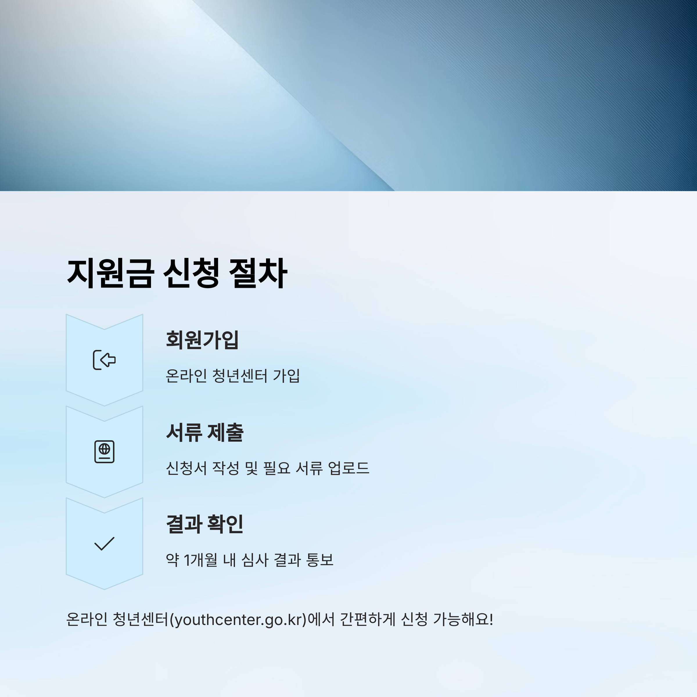 | 지원금은 어디서 신청하나요? | 온라인 청년센터(youthcenter.go.kr)에서 신청해요. |
