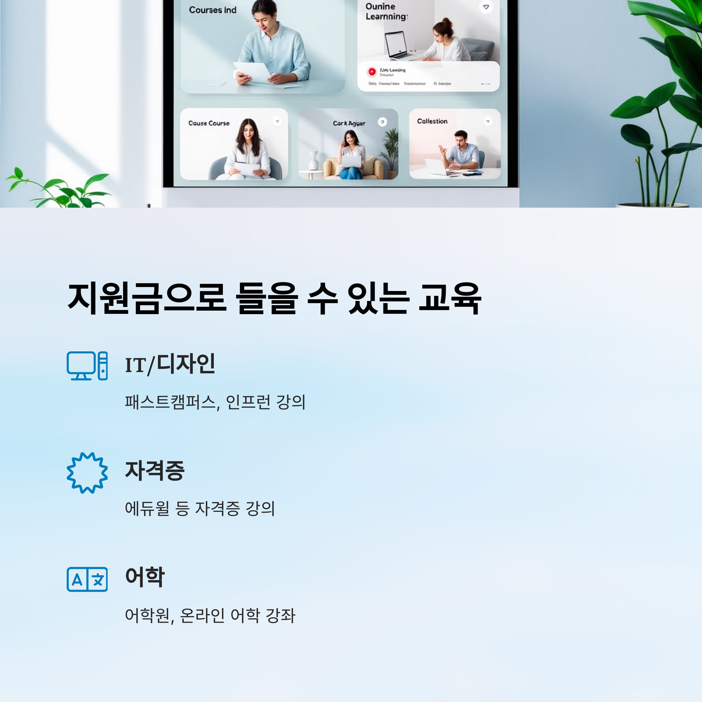 지원금으로 다양한 교육 프로그램에 참여할 수 있어요. 예를 들어, IT나 디자인 분야의 온라인 강의, 직무 교육 프로그램, 면접 스킬 강화 강좌 등이 포함돼요. 지원 가능 항목은 고용노동부 홈페이지나 관할 고용센터에서 자세히 확인할 수 있어요.