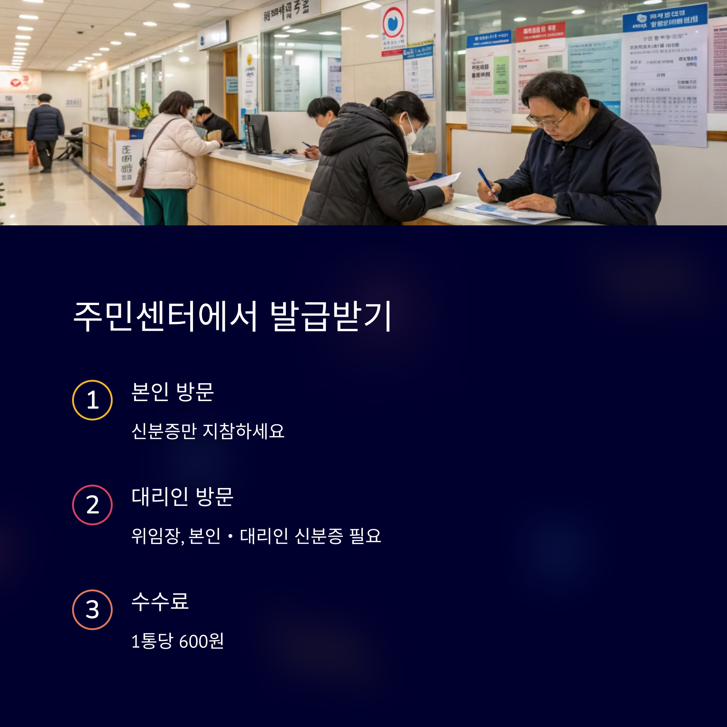 | 3. 수수료 납부 | 발급 수수료 (보통 600원~1,000원) |