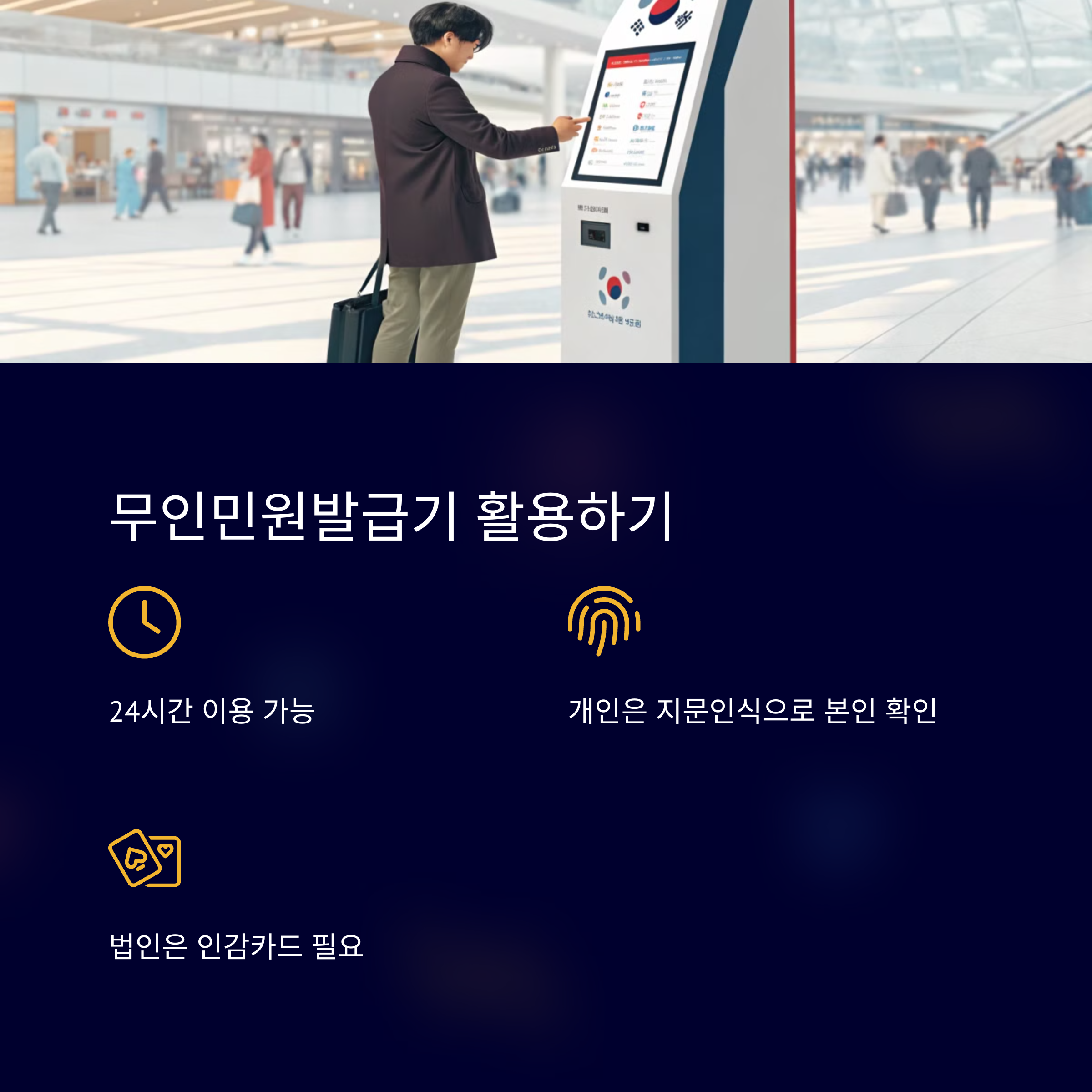 | 무인발급기 활용 | 24시간 이용 가능한 발급기 확인 |