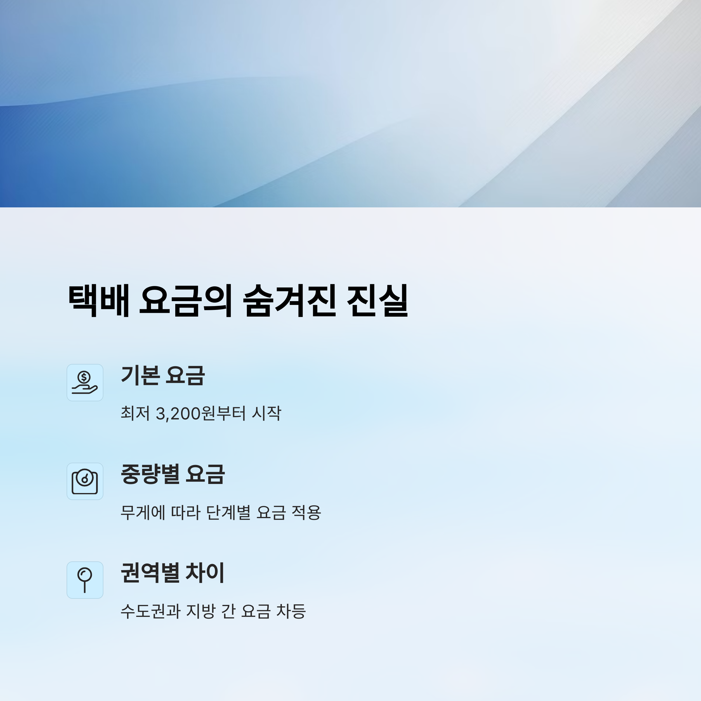 1. **기본 요금**: 일정 무게와 크기 기준으로 정해진 최소 요금이에요. 보통 3,000~5,000원 선이에요.
