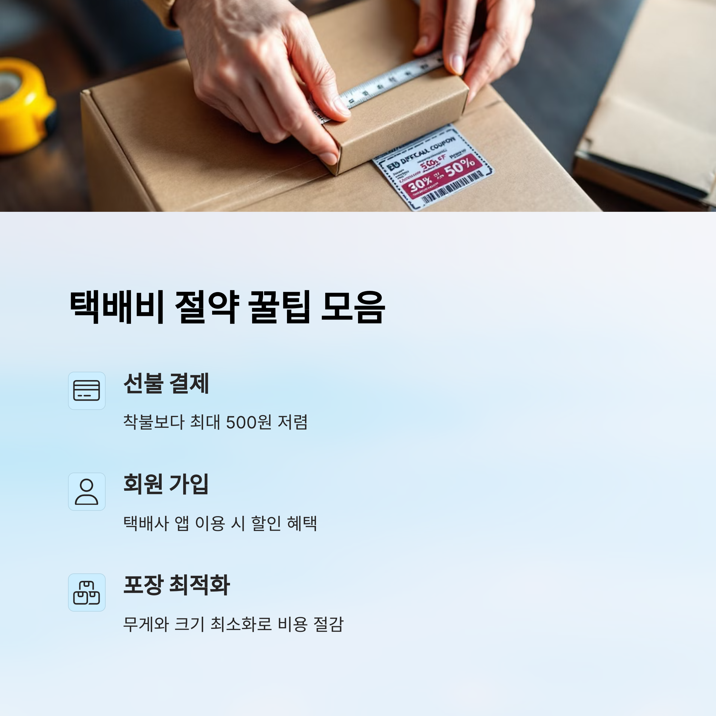 - 📏 **작은 상자를 이용하기** – 크기가 클수록 추가 요금이 붙어요.