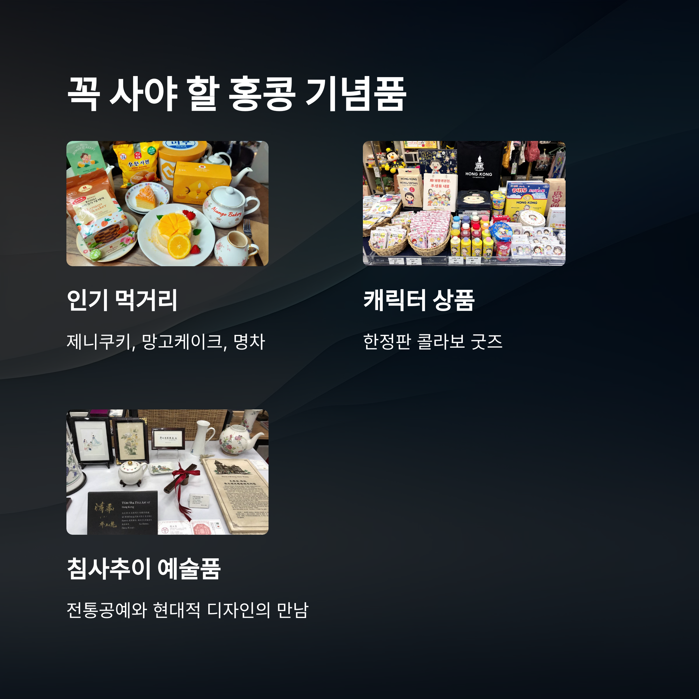 기념품은 가격도 중요하지만, 특별한 이야기가 담긴 제품을 선택하면 더 기억에 남아요. 특히 한정판 제품이나 홍콩에서만 구매할 수 있는 아이템을 찾아보세요! 🎁😊