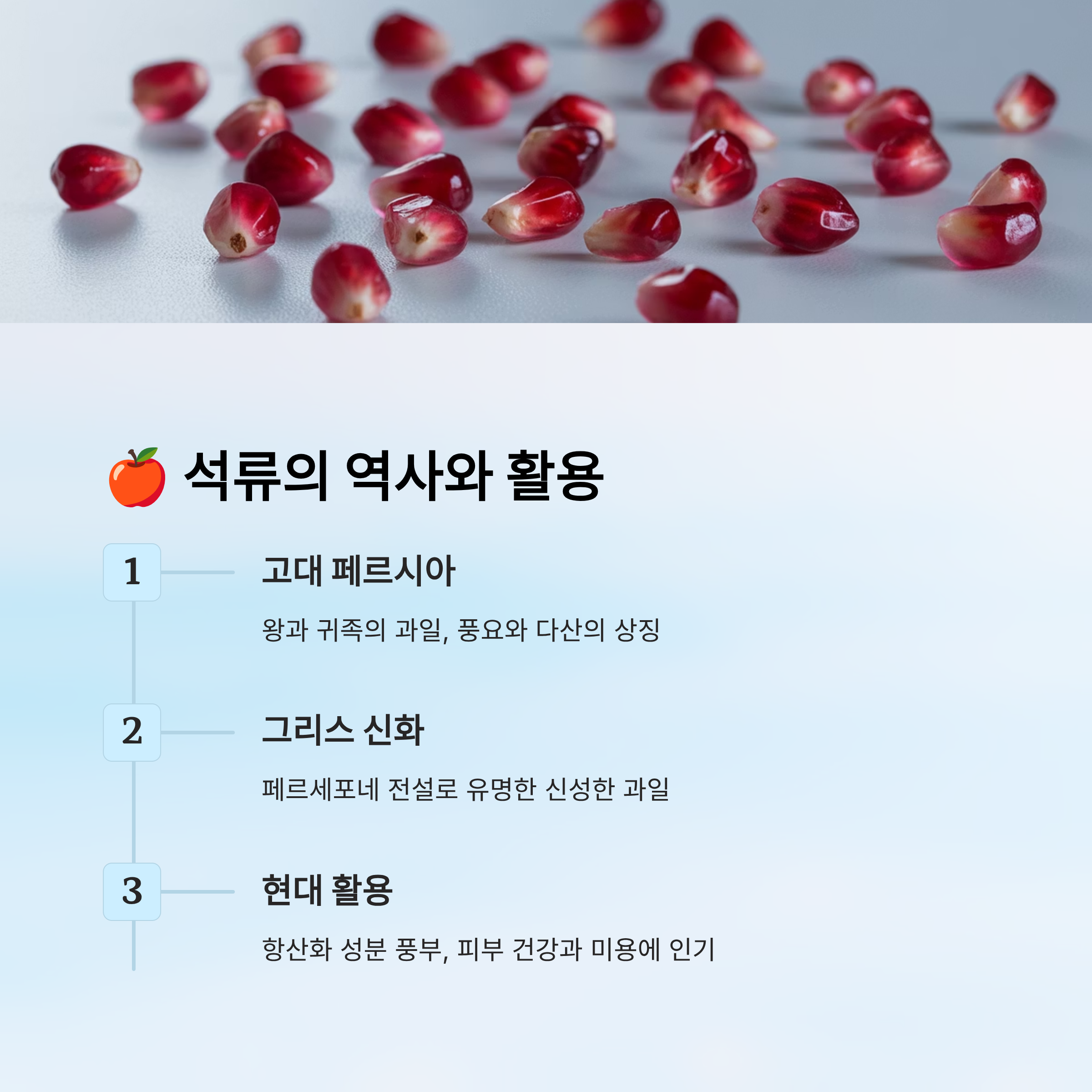 이처럼 석류는 고대부터 현대까지 인류가 사랑해온 특별한 과일이에요. 가을철 석류를 챙겨 먹으면 건강과 함께 계절의 멋을 동시에 즐길 수 있답니다. 😍