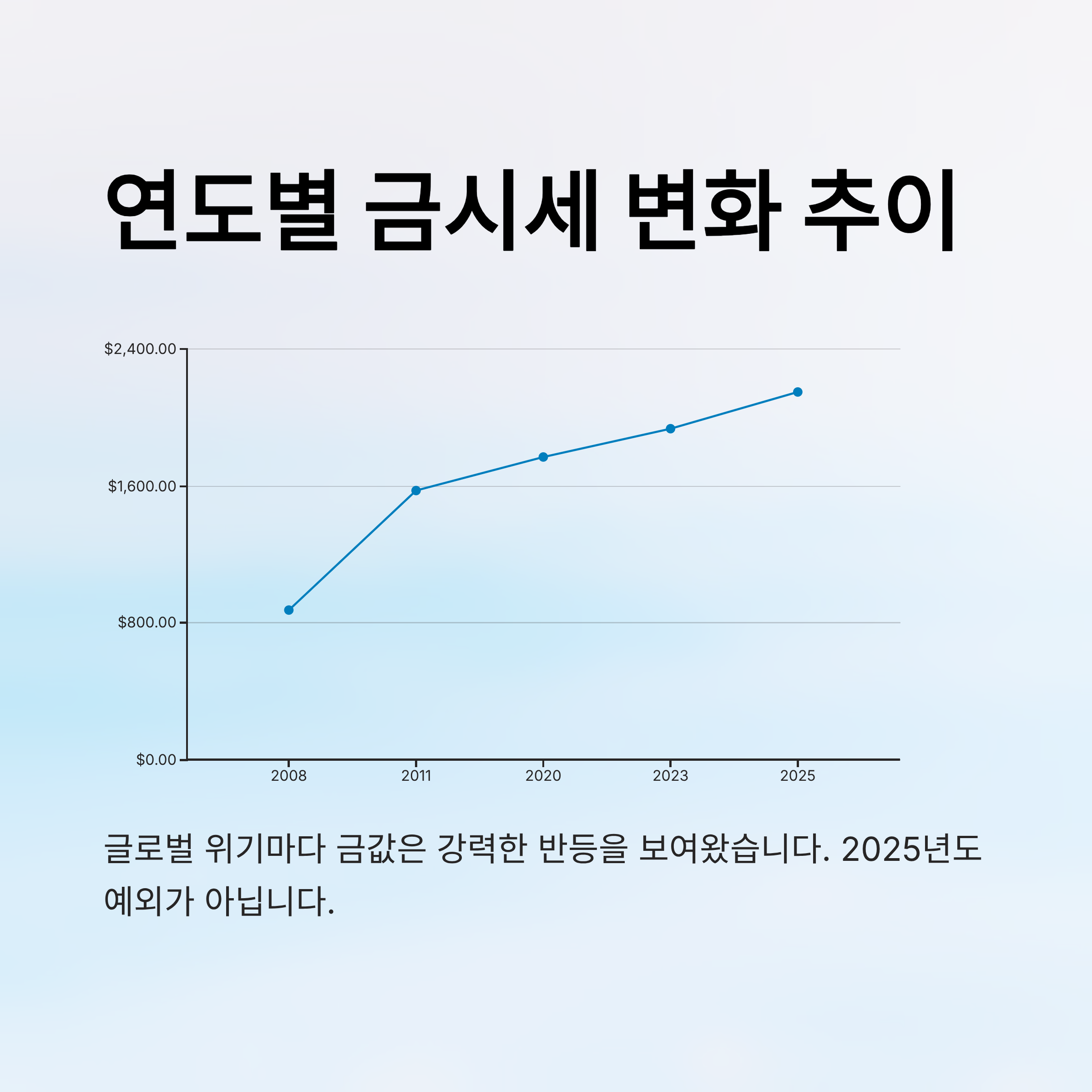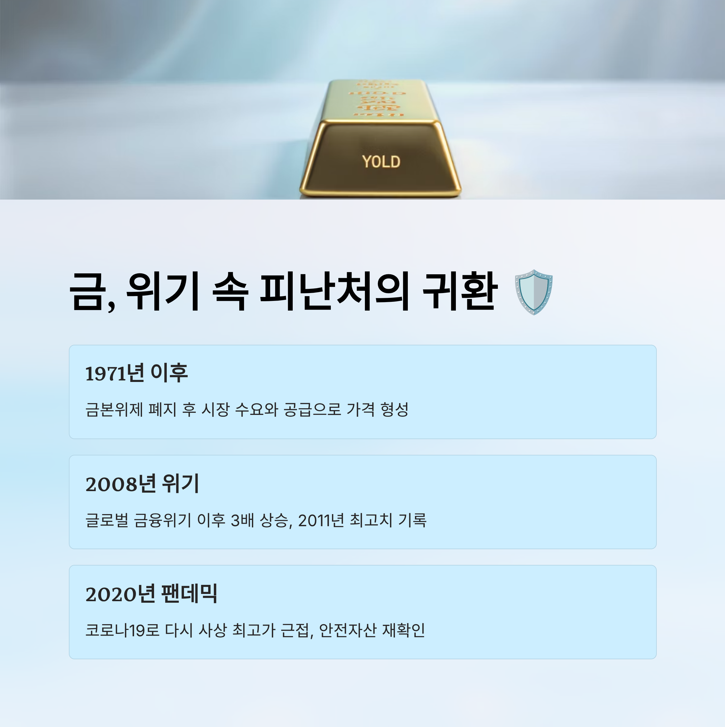 금은 인류 역사상 가장 오래된 안전 자산 중 하나예요. 세계 경제가 흔들릴 때마다 사람들은 금을 찾았고, 이로 인해 금값은 일정한 패턴을 보여주곤 했답니다.