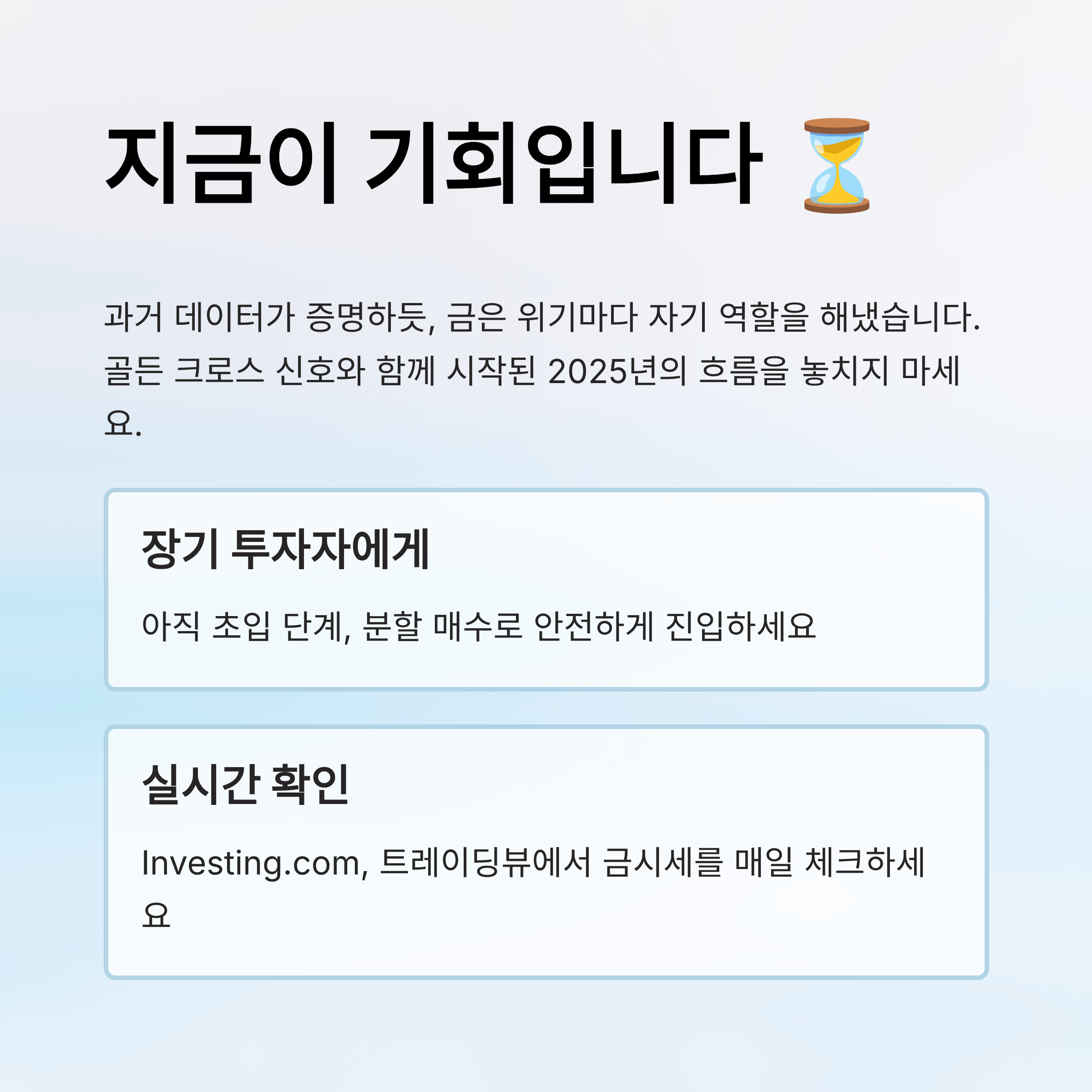 과거 데이터를 보면, 금은 경제 위기마다 강한 반등을 보여줬어요. 지금도 그 흐름이 이어지고 있다는 점에서 장기 투자자들에겐 좋은 시점일 수 있어요. 📈