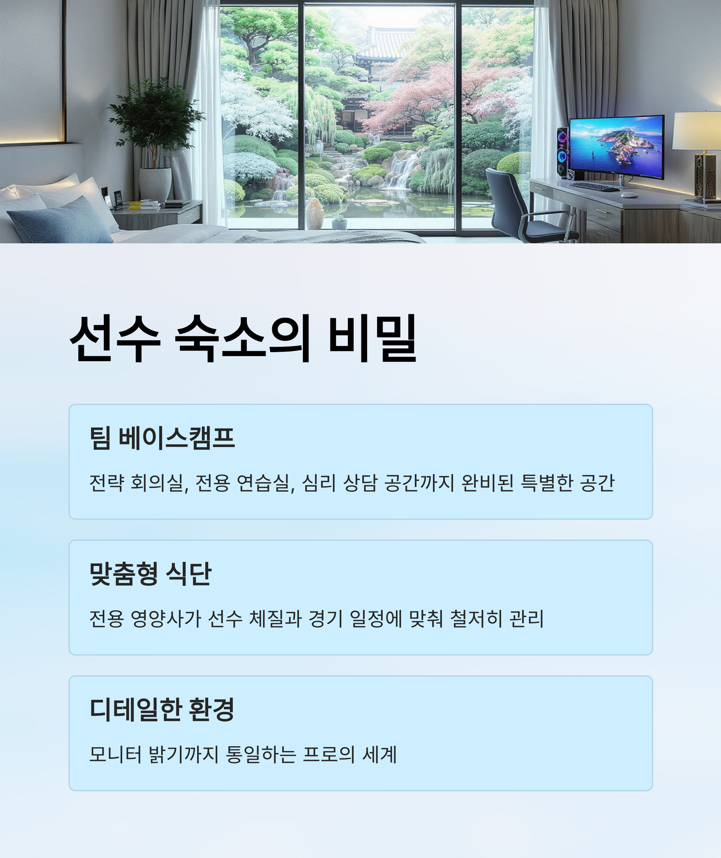 숙소 내에서는 팬들의 시선을 피해 휴식하는 시간이 가장 중요해요. 일부 선수는 개인 장비를 가져와서 방 안에서도 훈련을 지속하기도 해요. 실제로 한 유럽 팀의 코치는 “호텔 방 안의 모니터 밝기까지 통일한다”고 밝혔어요. 이런 디테일이 바로 프로의 세계예요.