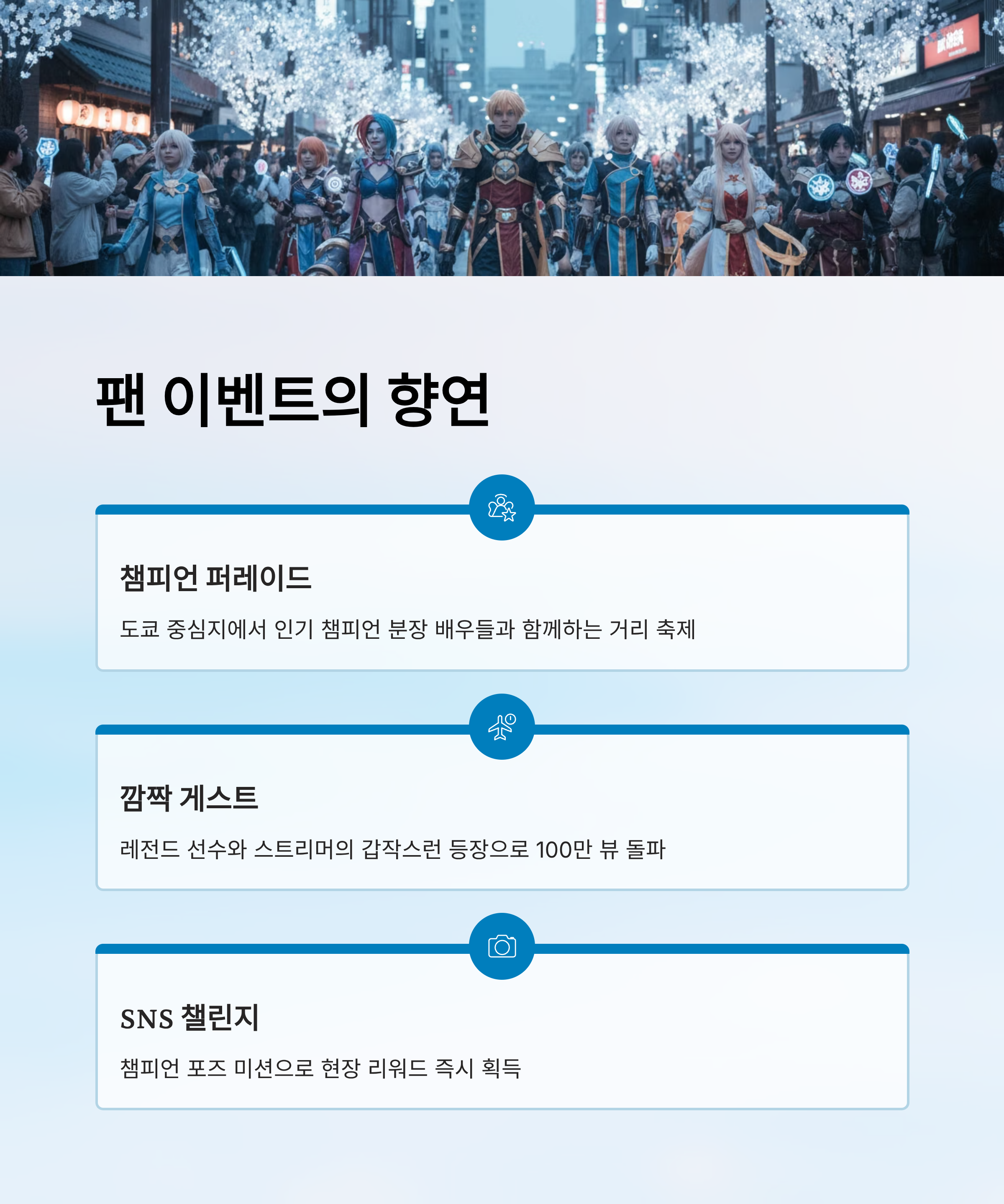 그리고 SNS 미션 이벤트도 인기 만점이에요. 특정 챔피언 포즈를 따라 하는 사진을 찍어 해시태그와 함께 업로드하면, 현장에서 바로 리워드를 받을 수 있어요. 이런 인터랙션이 팬들의 열정을 더욱 끌어올리죠.