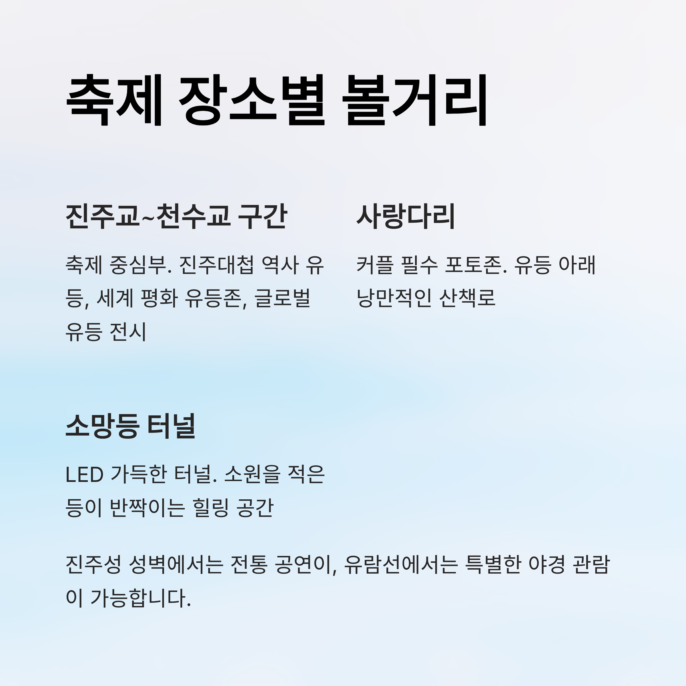 🏮 축제 장소별 주요 볼거리