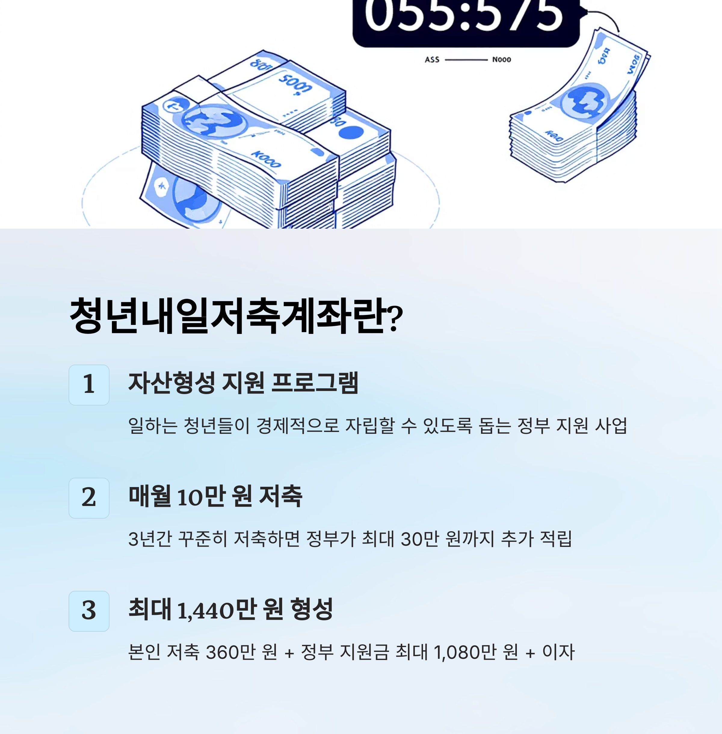 이 제도는 단순히 저축만 하는 것이 아니라, 정부가 추가로 최대 30만 원씩 지원해줘서 3년 뒤엔 최대 1,440만 원을 손에 쥘 수 있답니다. 저도 처음엔 "이게 진짜 가능한가?" 싶었는데요, 알고 보니 꽤 많은 청년들이 이미 이 제도를 통해 자산을 늘리고 있더라고요. 🙌