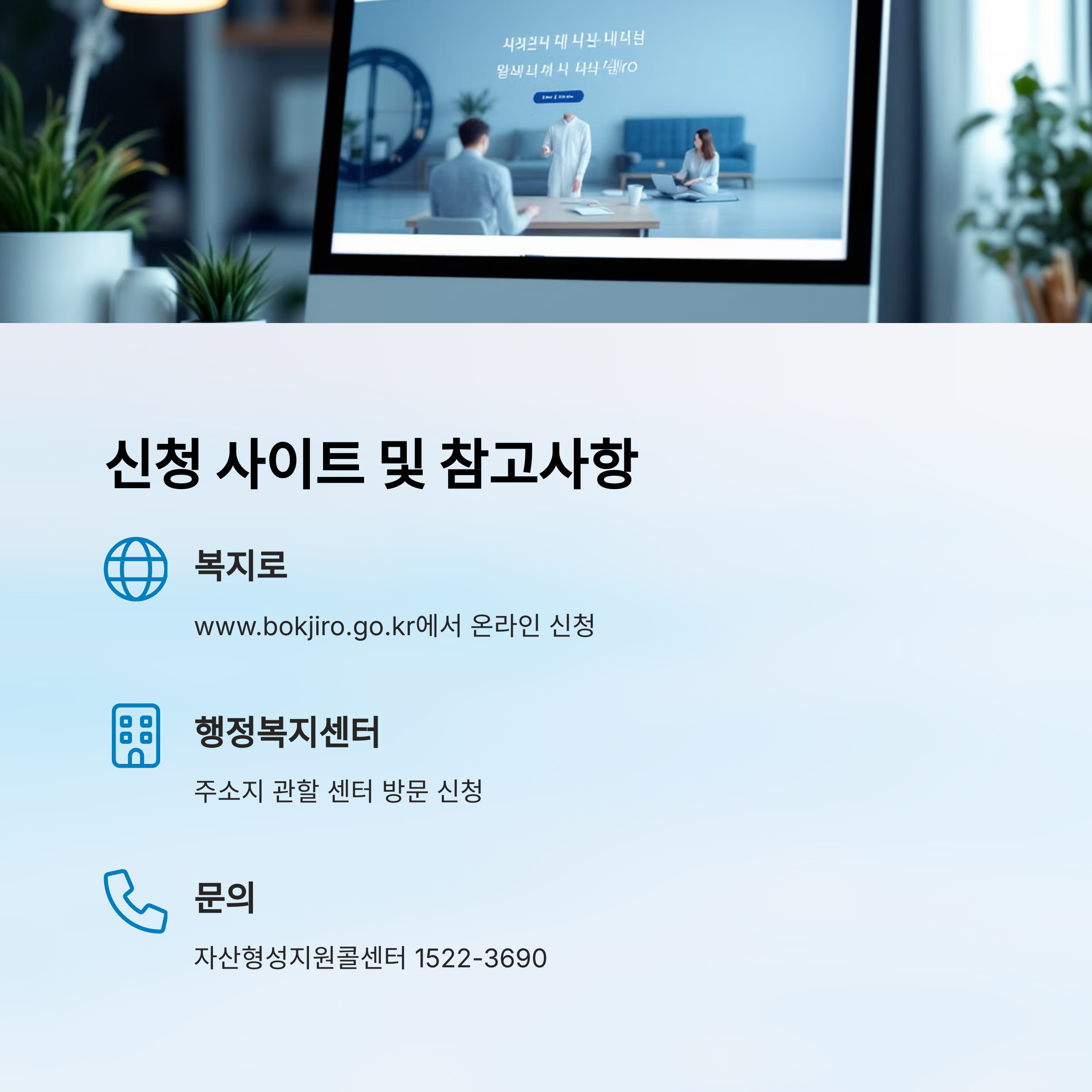 | 신청 | 읍면동 행정복지센터 방문 또는 복지로 온라인 신청 |