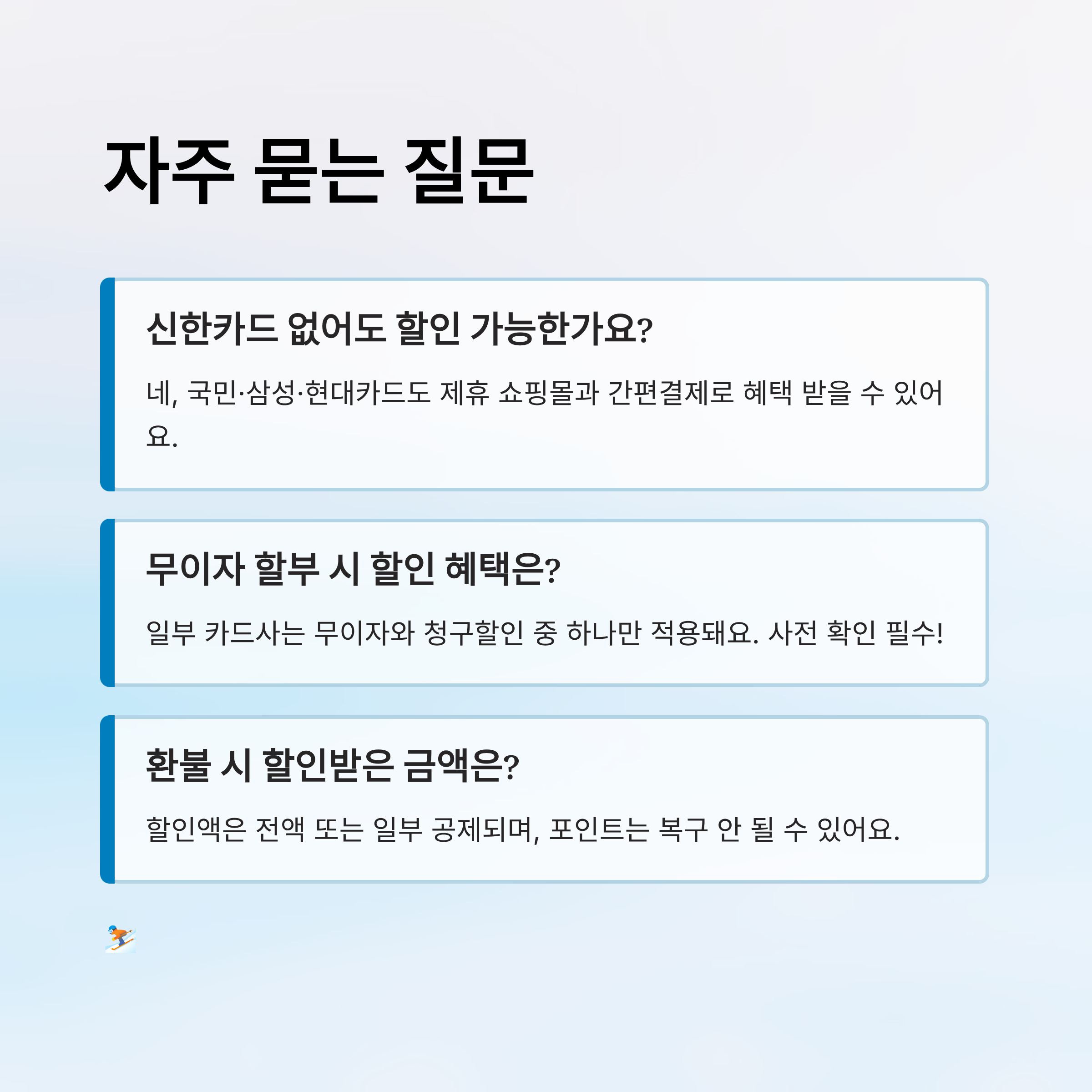 A3. 일부 카드사는 무이자 할부 시 청구할인이 제외되는 경우가 있어요. 혜택 둘 중 하나만 적용되는 구조니까, 결제 전 카드사 이벤트 페이지를 꼭 확인하세요.
