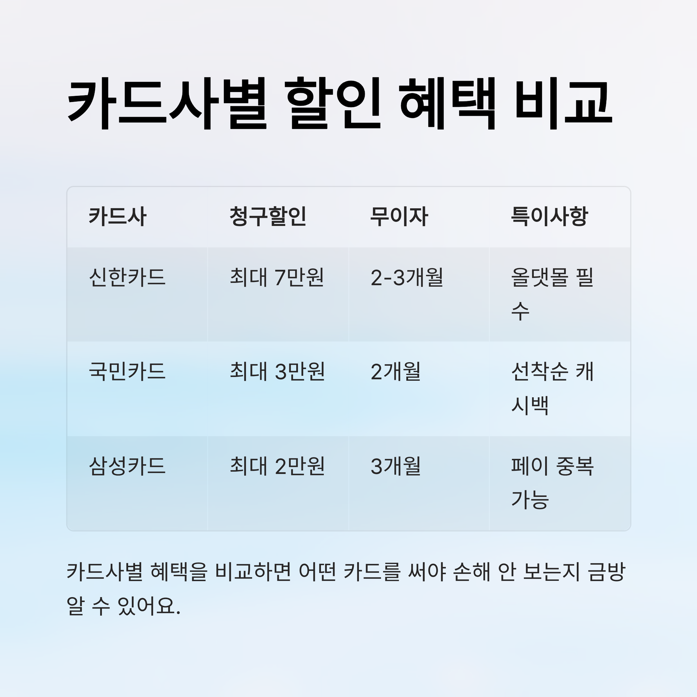 📊 주요 카드사별 할인 혜택 비교표