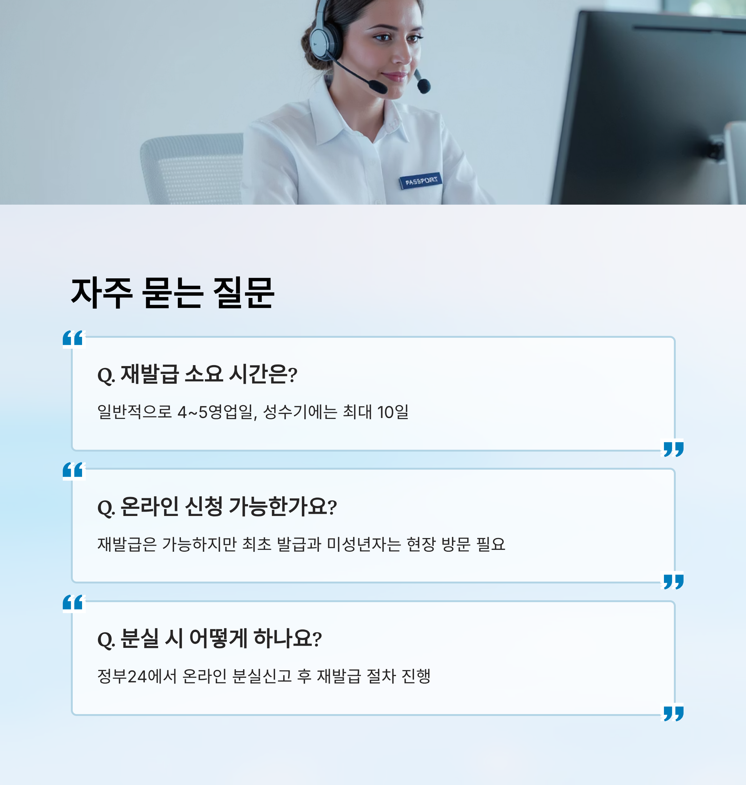 Q1. 여권 재발급은 얼마나 걸리나요?