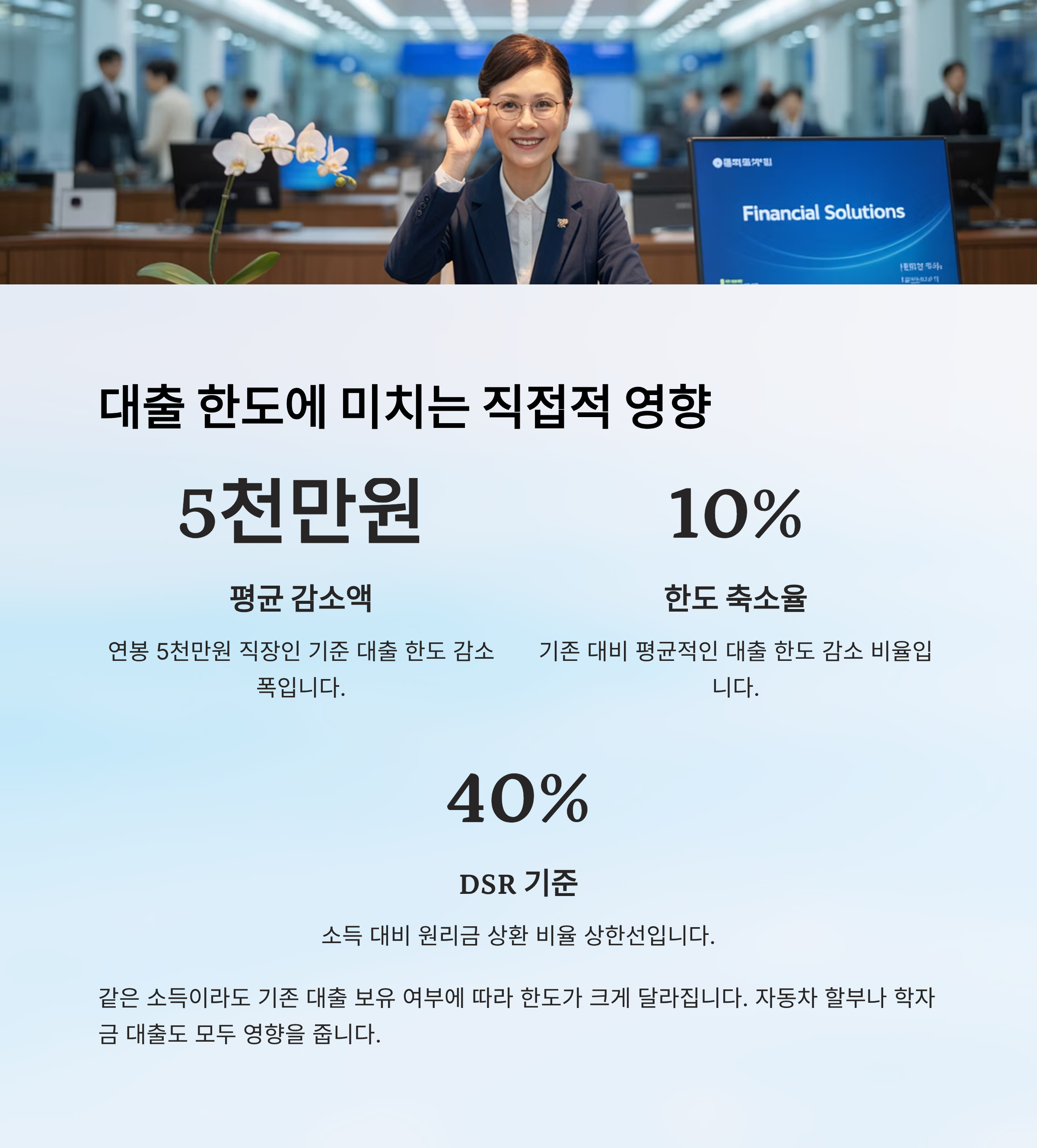이제 다음 장에서는 "대출 한도에 미치는 직접적 영향"을 다루며, 실제 금액 단위로 어떻게 바뀌는지 살펴보도록 해요.