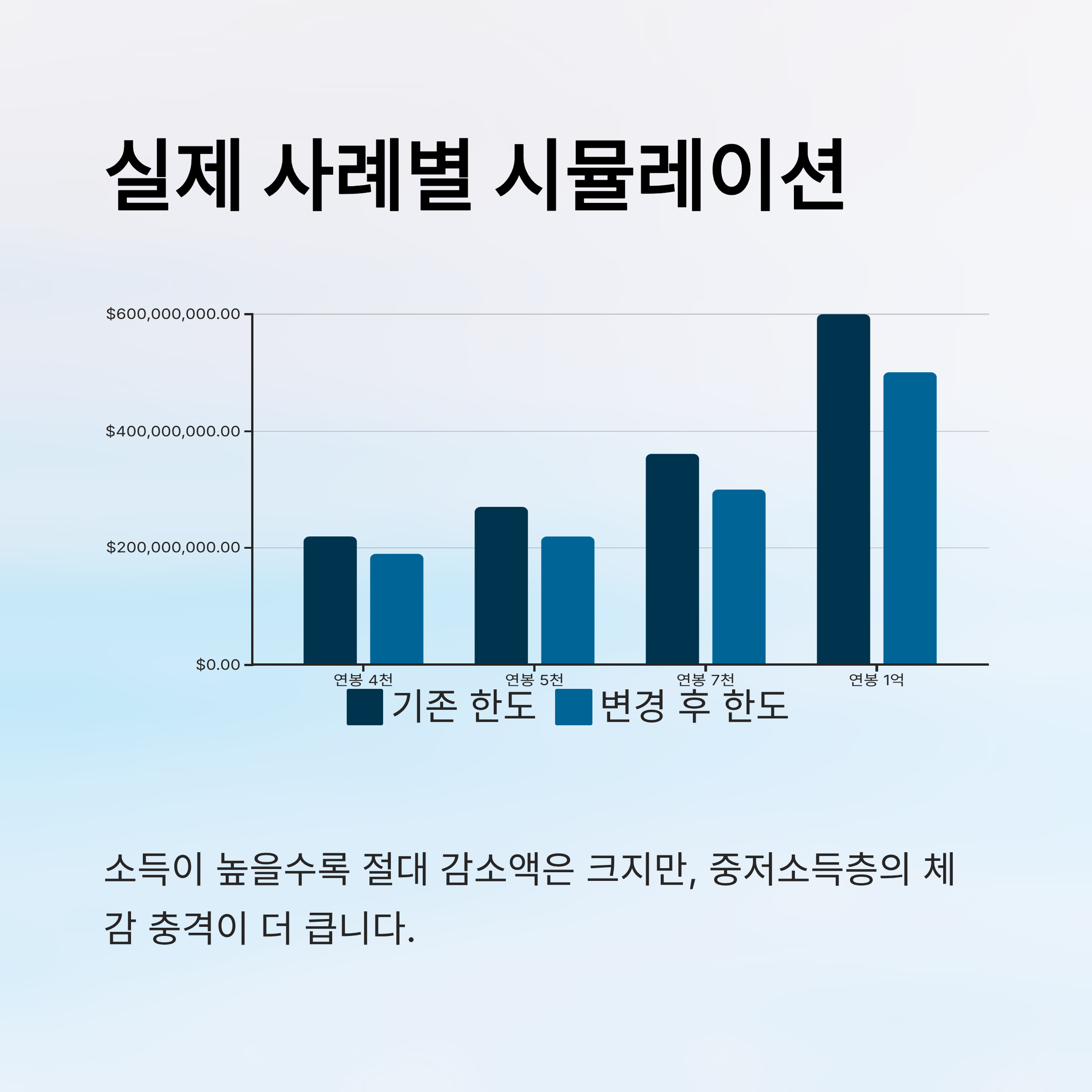 결국 이 시뮬레이션은 단순히 제도가 바뀌었다는 사실보다, 내 상황에서 몇 천만 원이 줄어들 수 있다는 걸 구체적으로 보여주는 도구예요. 그래서 이번 글에서는 누구든 바로 활용할 수 있는 계산 예시를 제공하는 거랍니다.