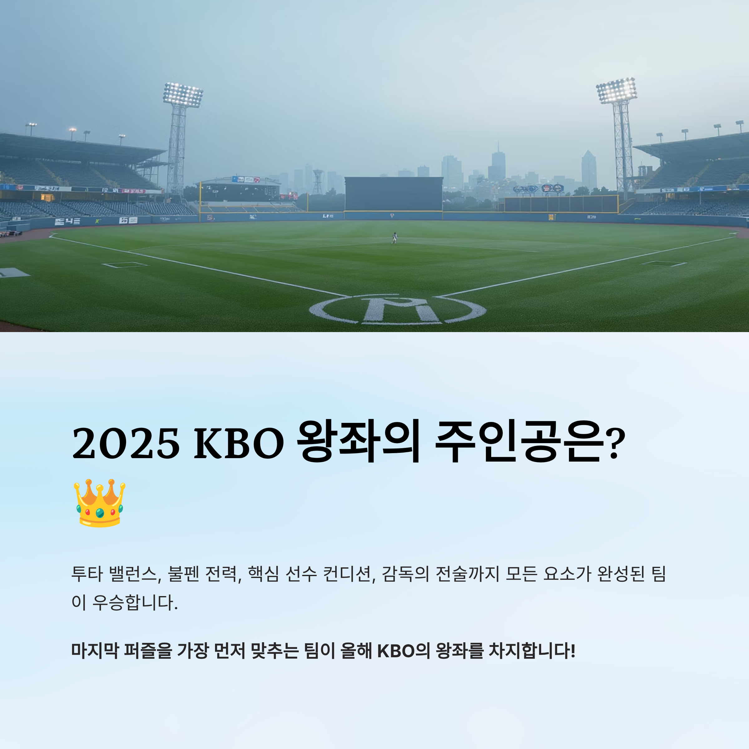 2025년 가을 야구는 그래서 더 기대돼요. 모든 팀이 퍼즐을 거의 다 맞췄고, 이제 마지막 조각 하나만 남았거든요. 그 퍼즐을 가장 먼저, 가장 정확하게 맞추는 팀이 올해 KBO의 왕좌를 차지하게 될 거예요! 👑